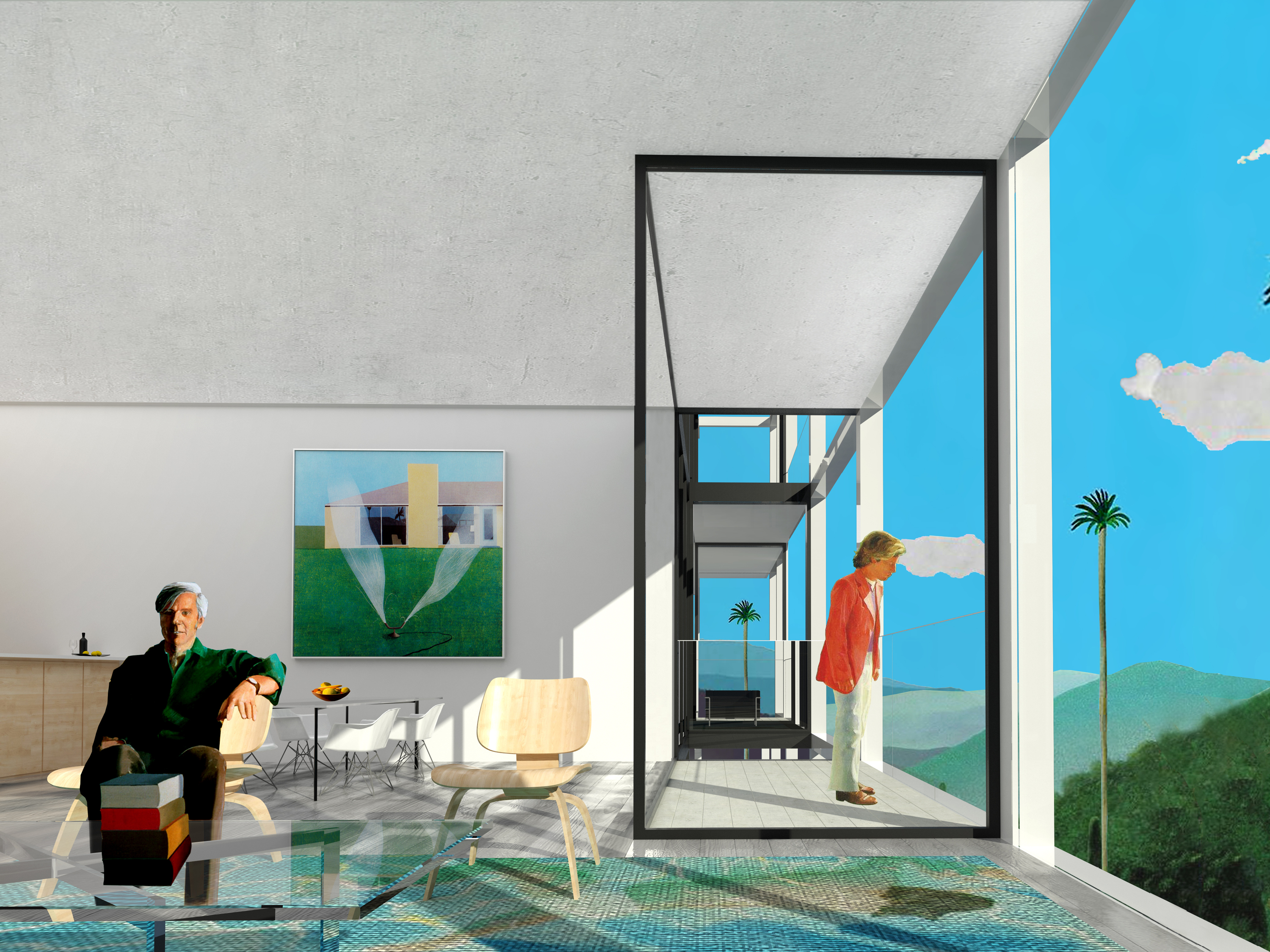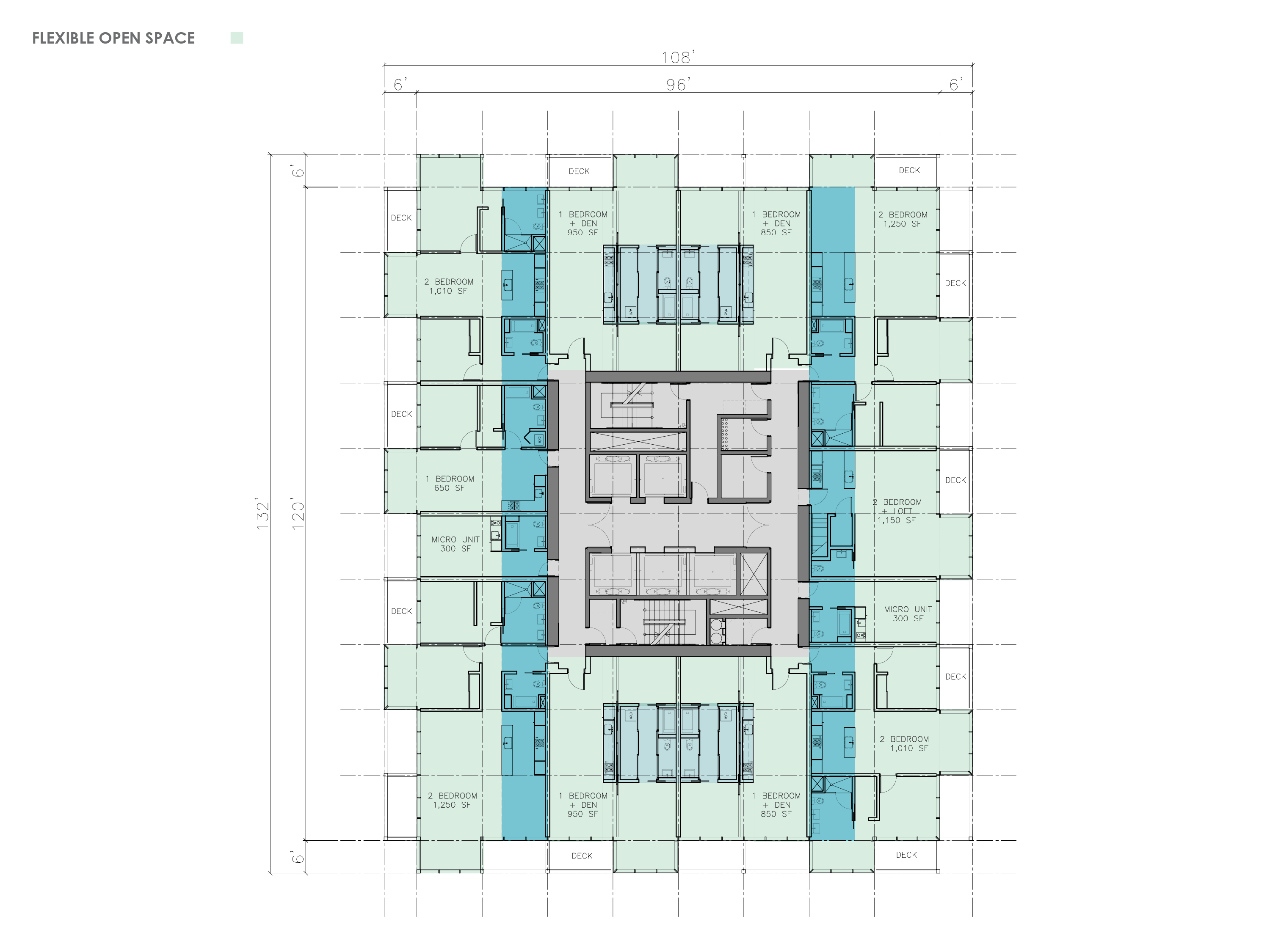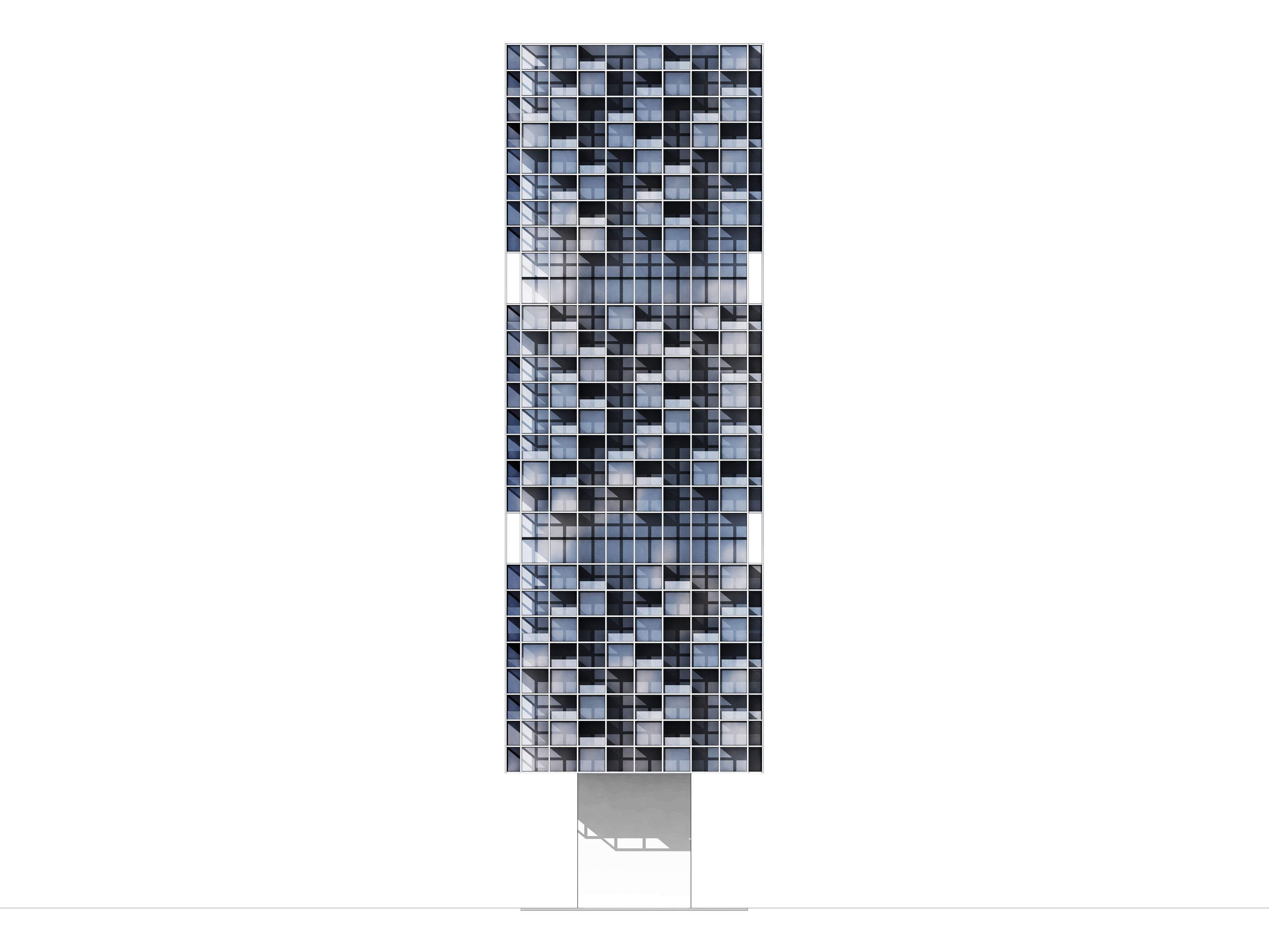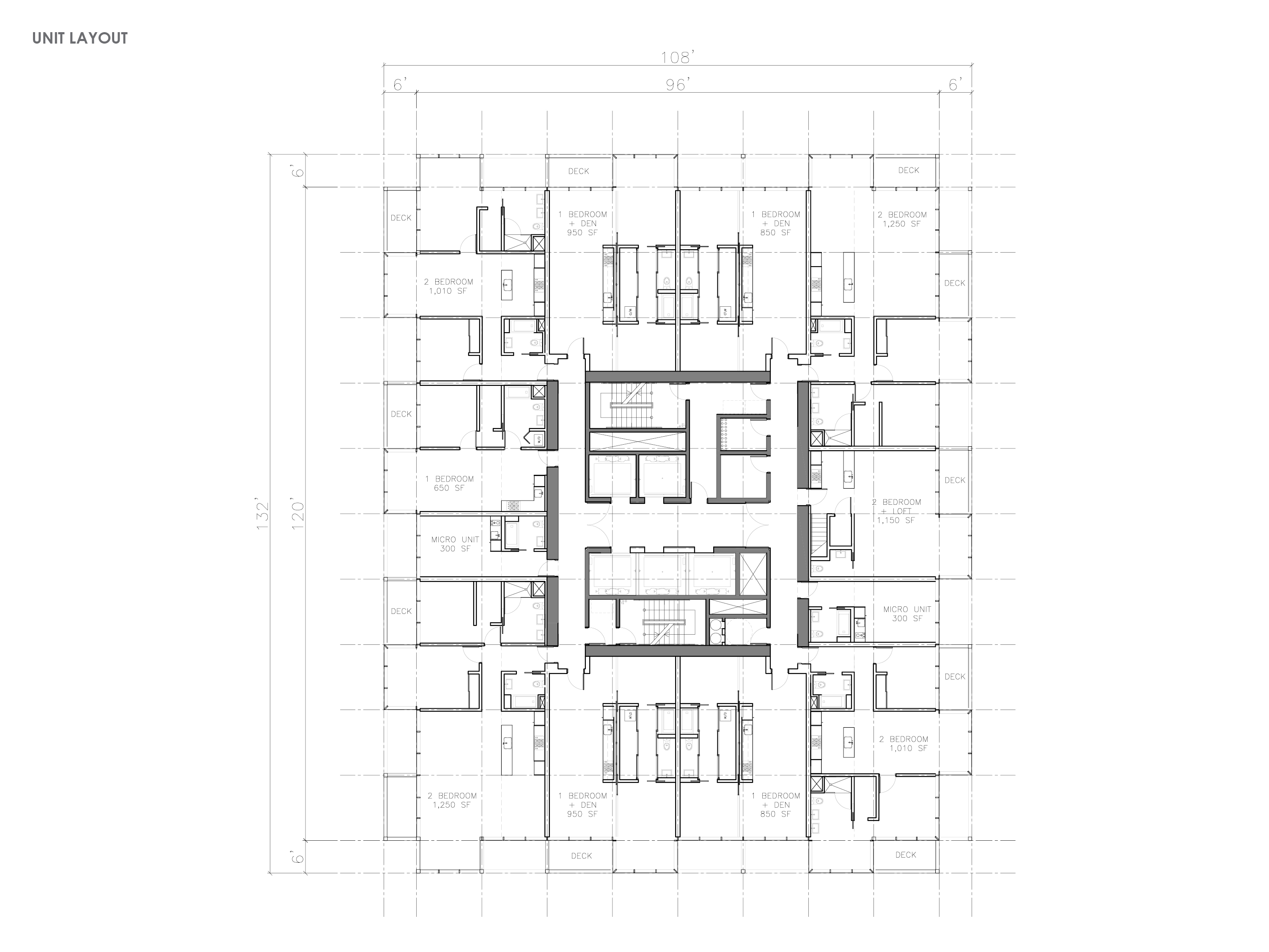 Our tower continues the search for new Los Angeles form, for sprawl condensed and turned vertical. A six foot wide perimeter zone wraps the four faces of the tower. This band of oscillating bays, balconies, and voids, creates a rich middle field between interior and exterior, open and closed, public and private, an upturned porch hovering in sky.
