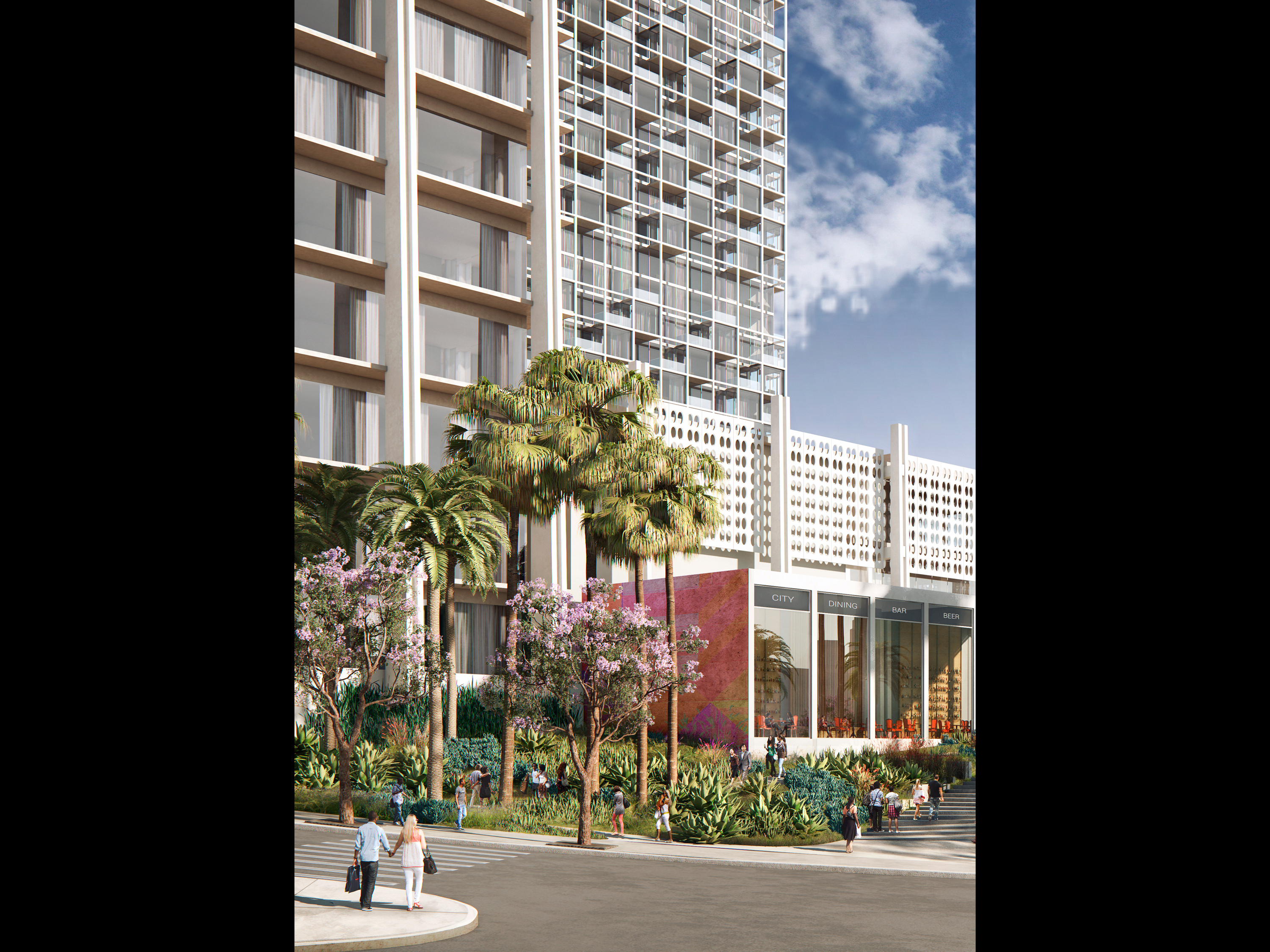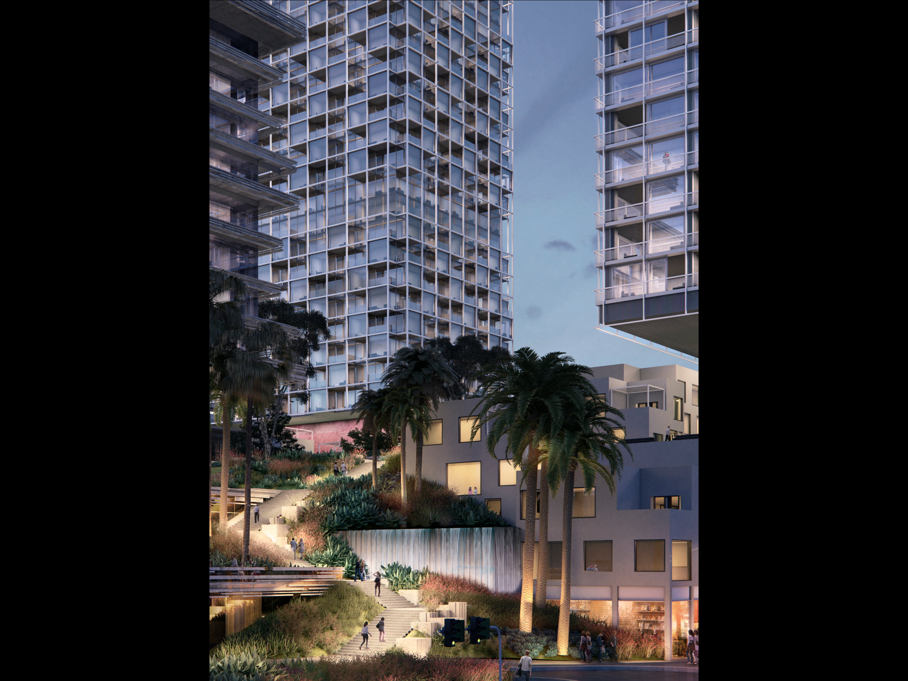 1111 Sunset is a collaboration with a SOM master plan, a Field Operations landscape, a SOM residential tower, a Kengo Kuma Associates Hotel, and a second residential tower by Stanley Saitowitz/Natoma Architects.