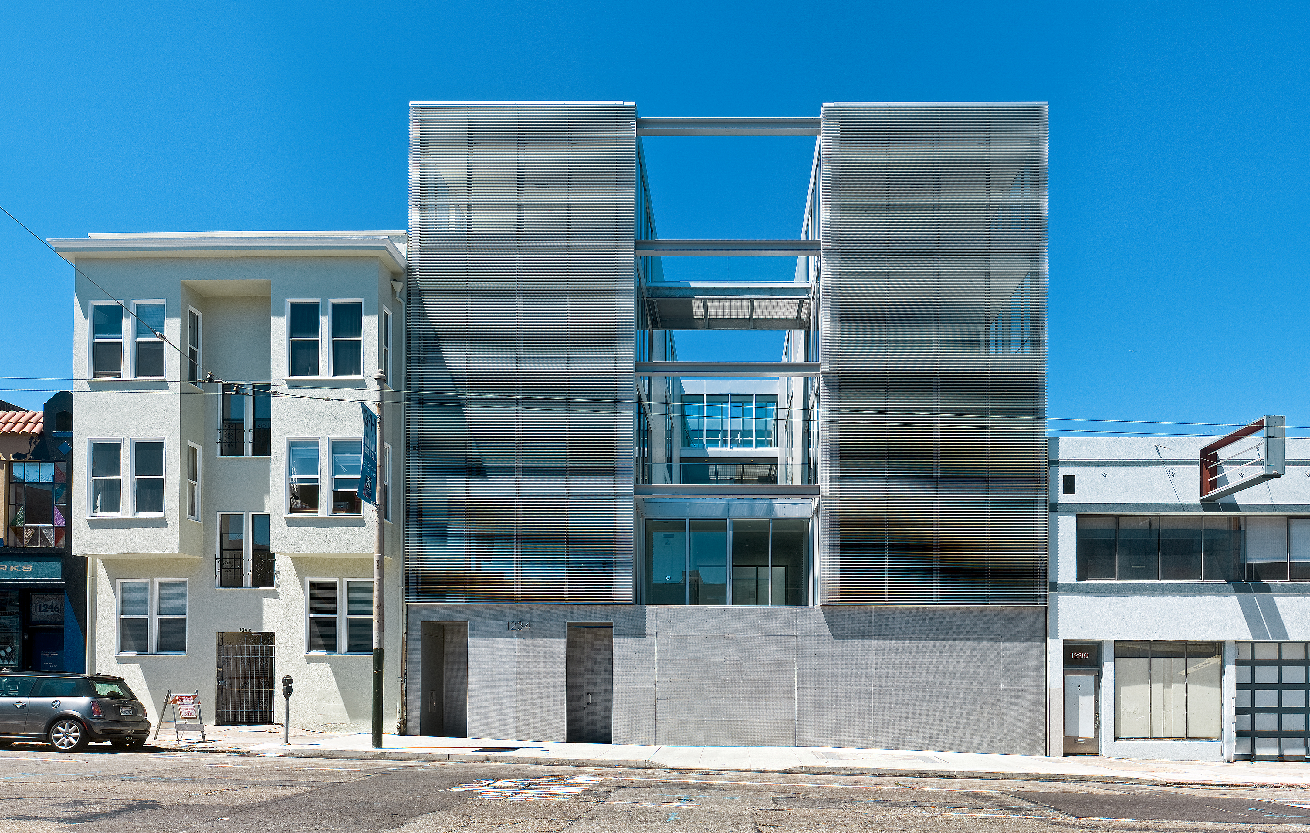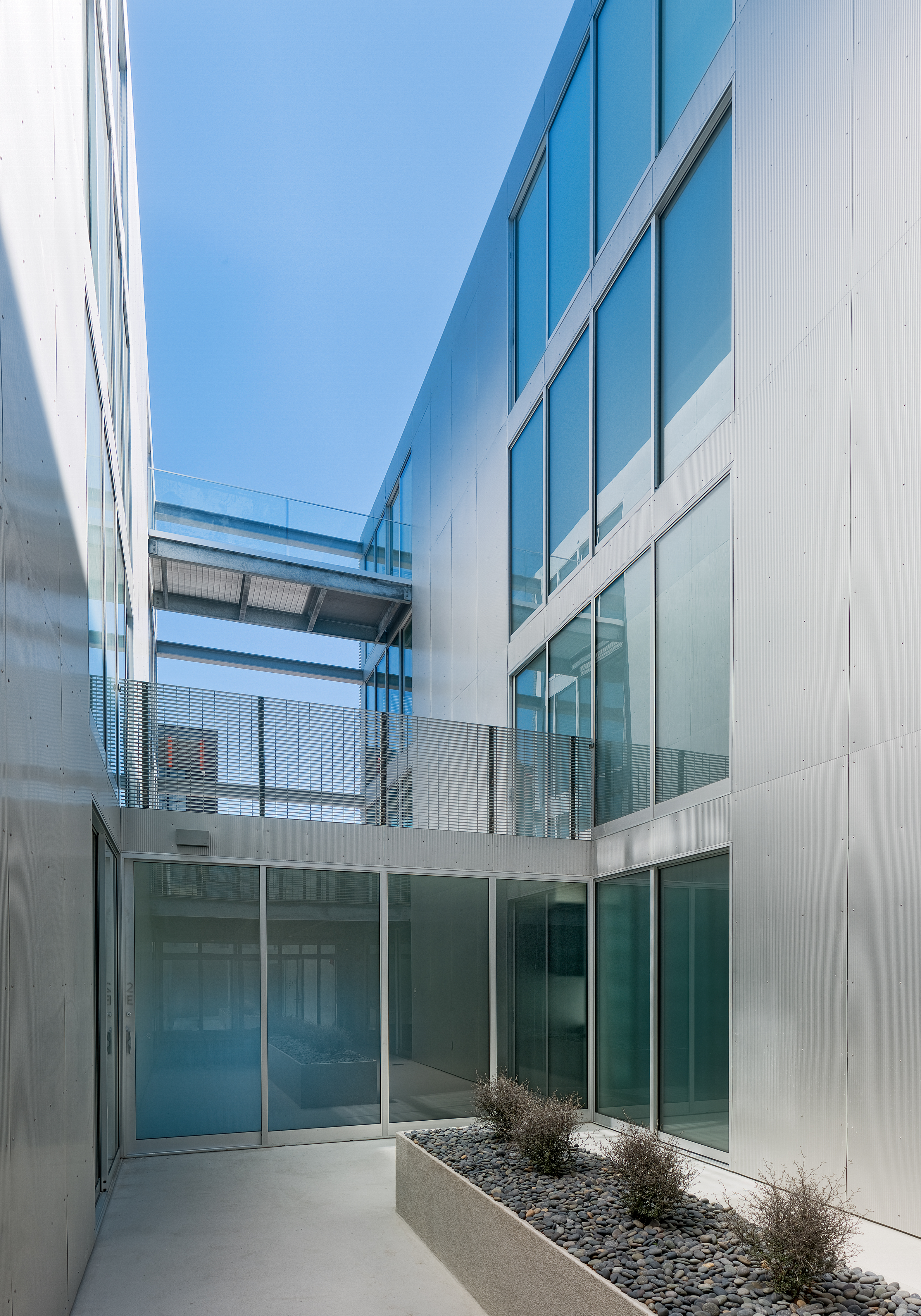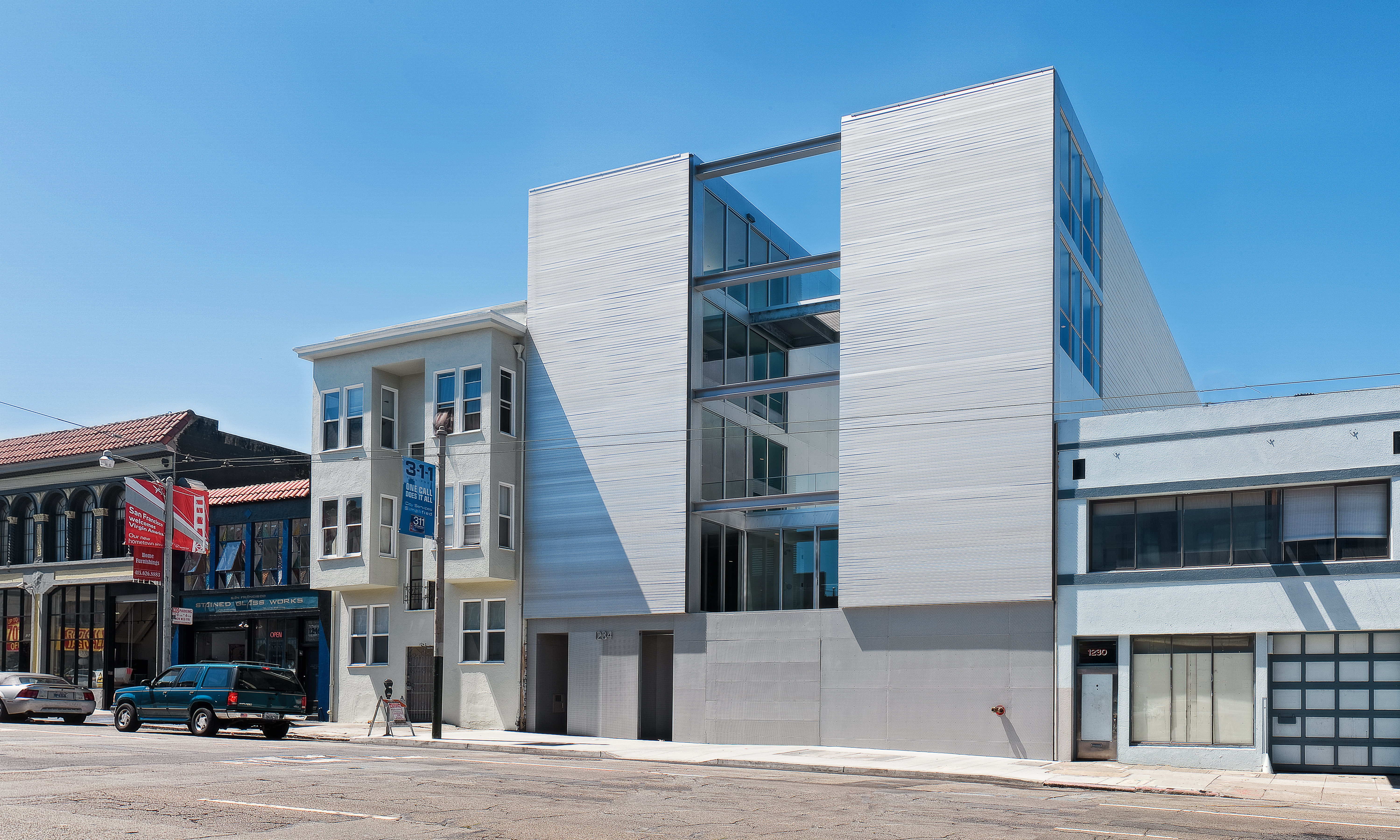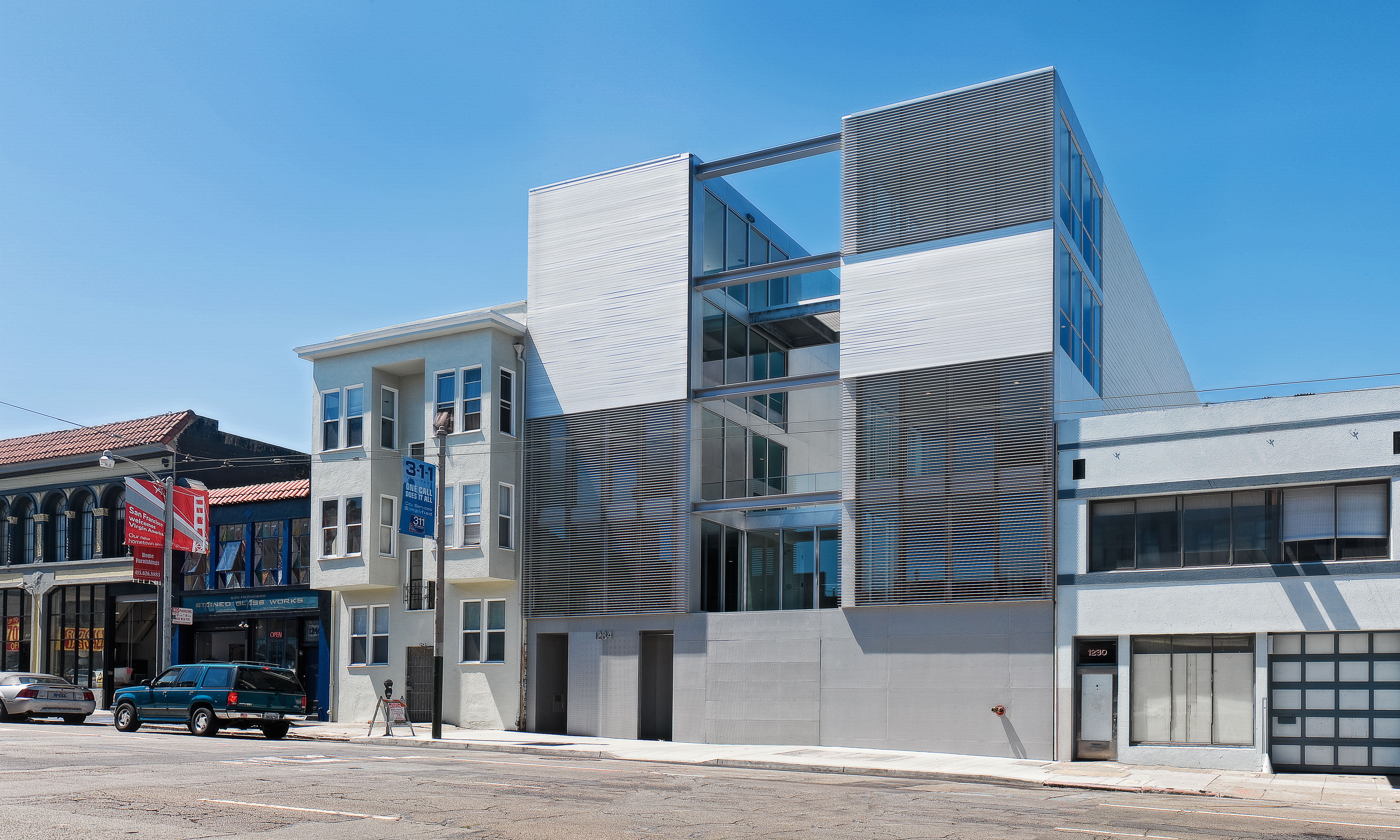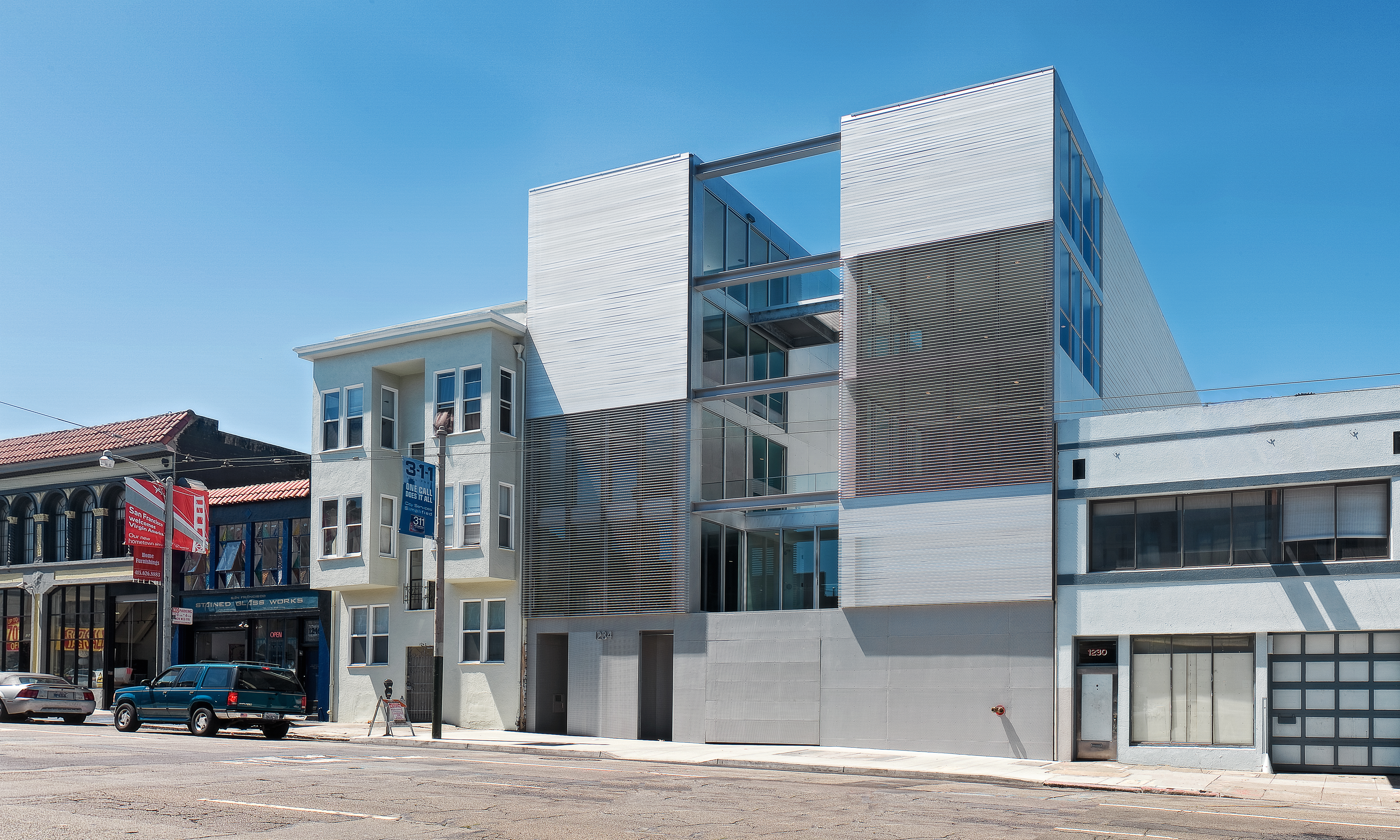 The 50-by-165 foot site stretches from Howard Street on one side to Natoma Street on the other. A one-way drive, with parking on one side and lobby and circulation on the other, links the streets. Above the drive a court is carved through the block, dividing the width of the building into three equal bars. The central bar remains empty; those on either side are again divided, into two halves. The east bar contains two-bedroom units; the west bar, which also accommodates the elevator and stairs, one-bedroom units. Floating service walls create a sense of spaciousness and indeterminacy. Bridges cross the central court, giving access from the east bar to the west bar. In a loft-saturated housing environment, this complex offers an alternative, providing more privacy to accommodate family living. Unlike typical urban housing, these units have abundant light from windows along the length of the court.