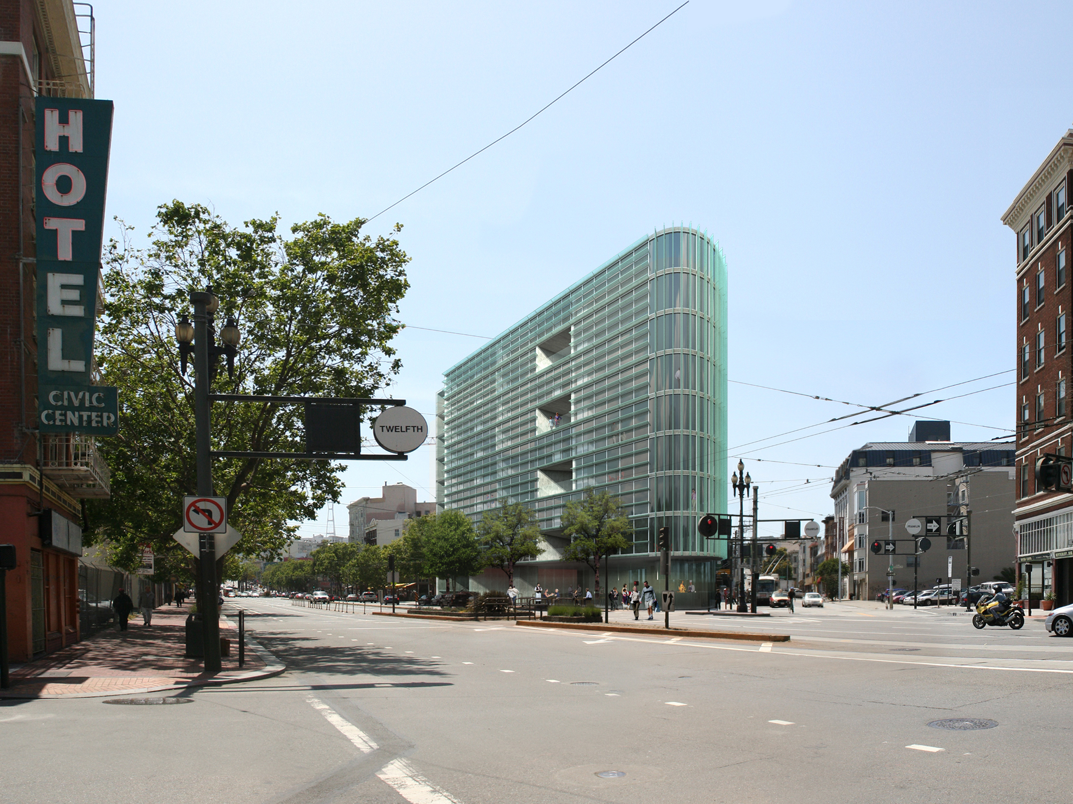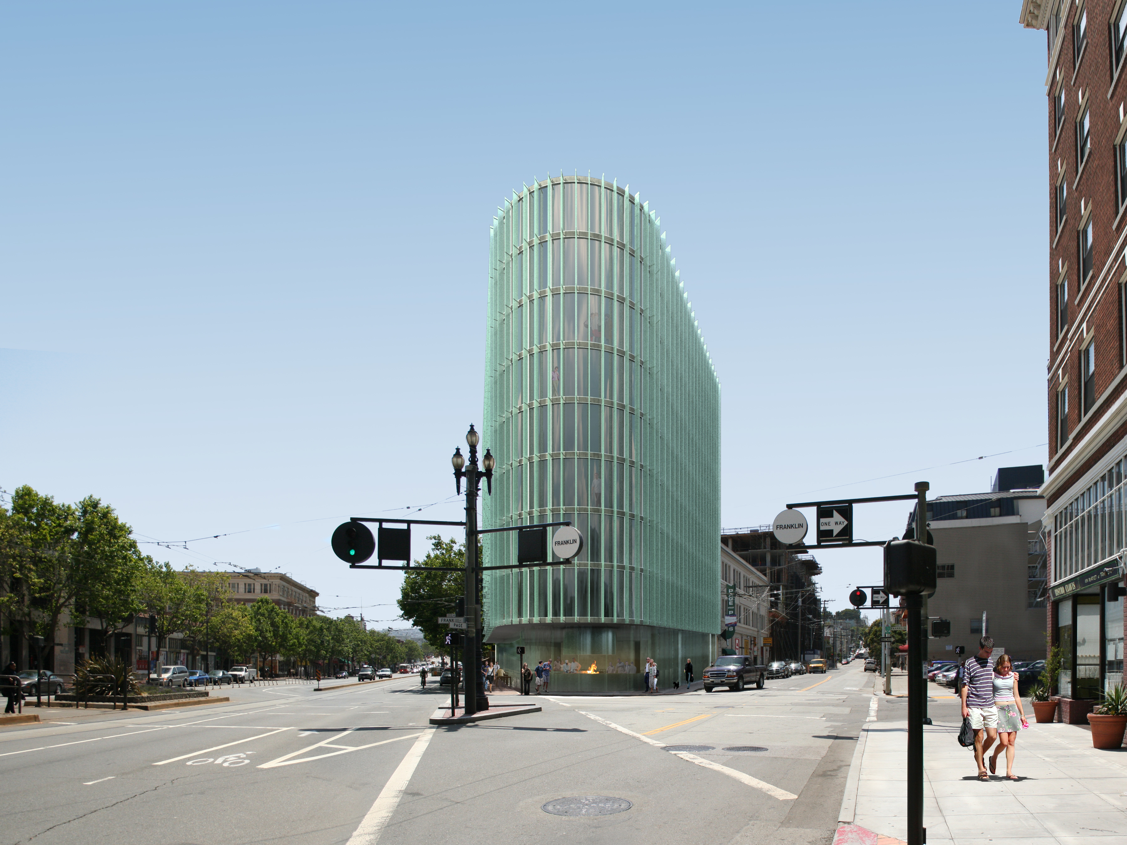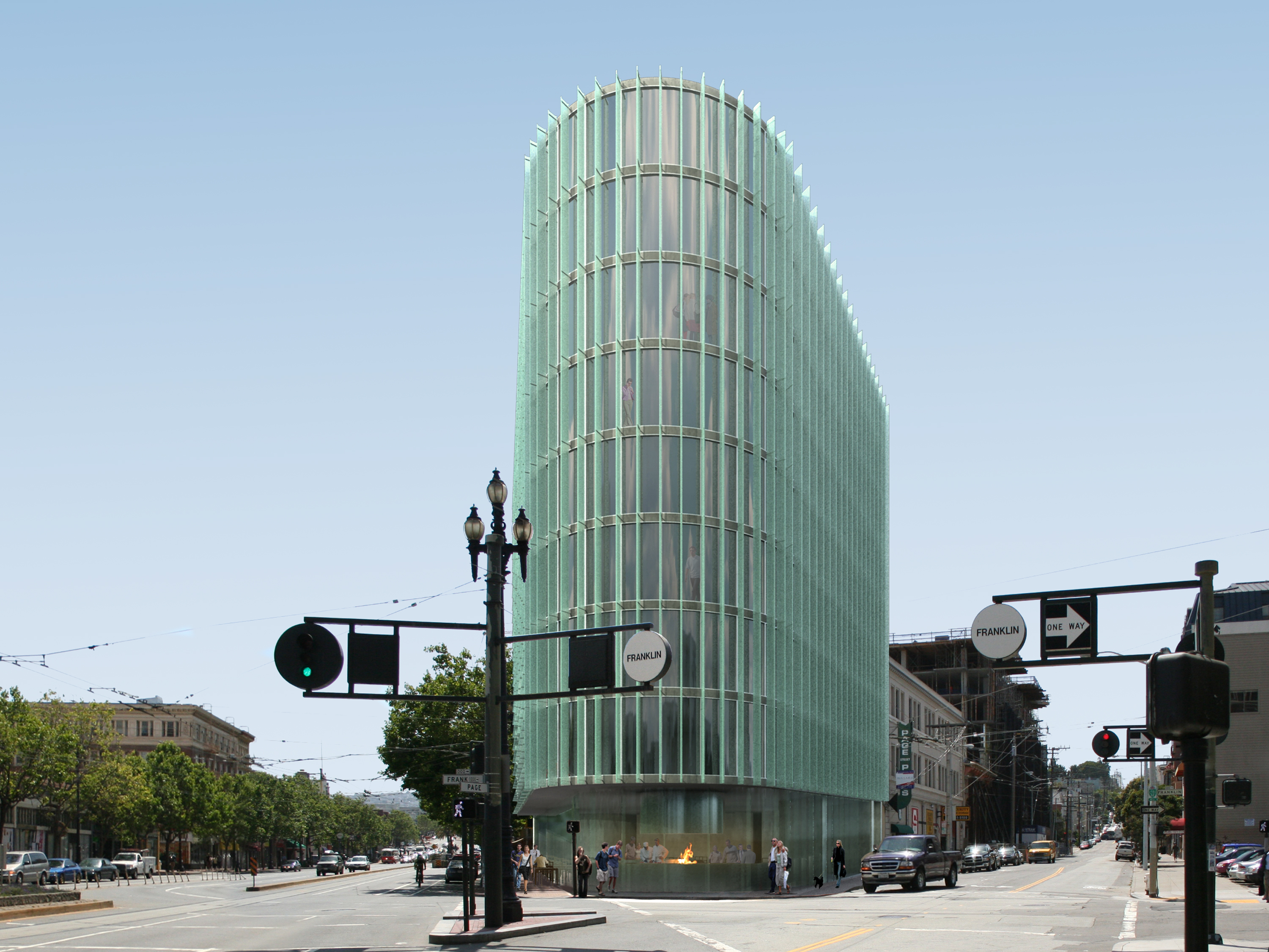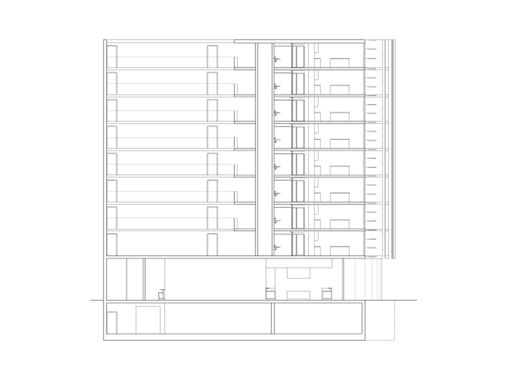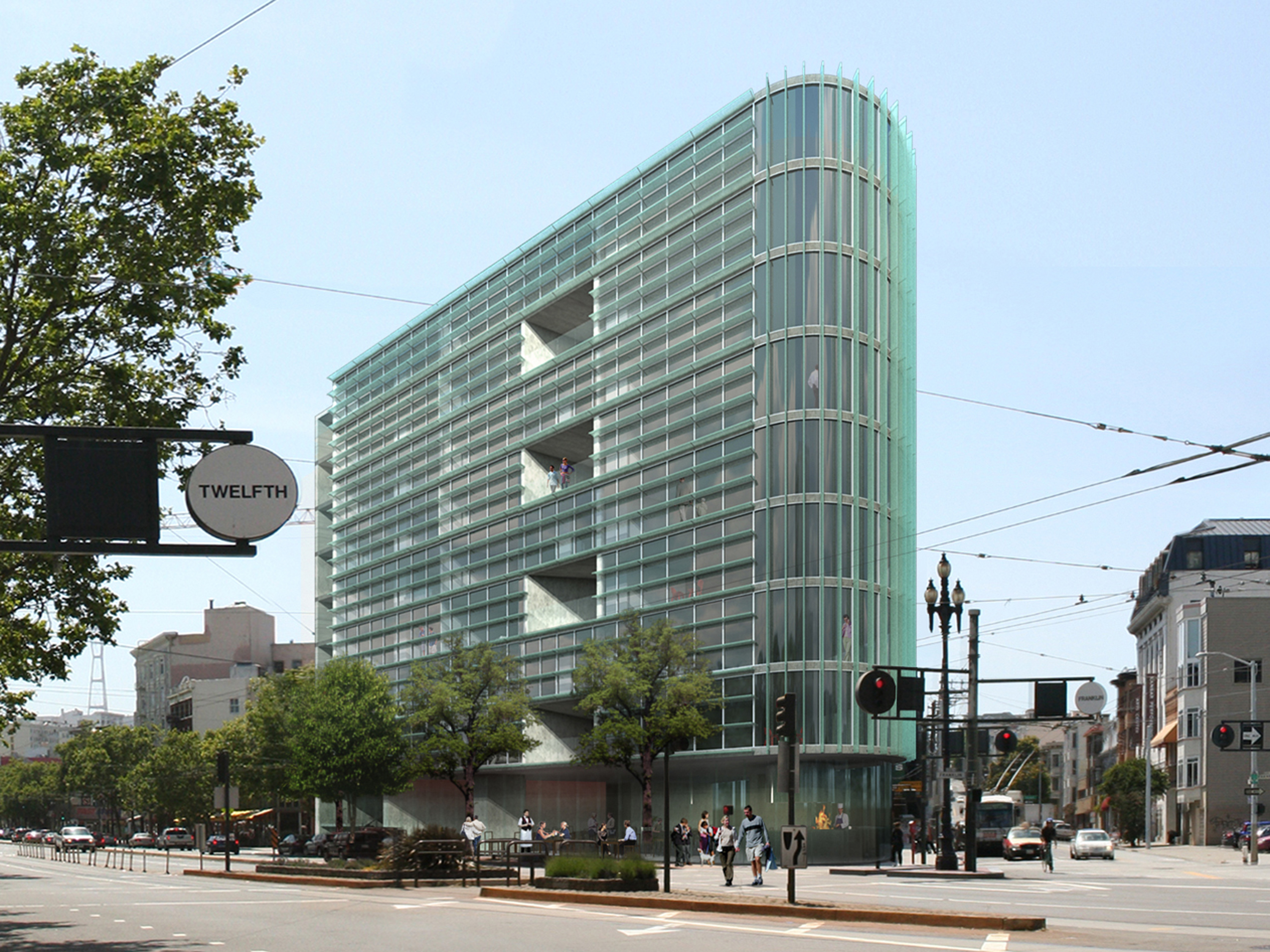 The expression of the building acknowledges the importance of these highly visible and memorable markers along the main street of the city. The delicate façade of vertical filigree continues the building textures so typical of San Francisco in a contemporary palette of concrete and glass, creating shading and layering for the units within, at this busy intersection.