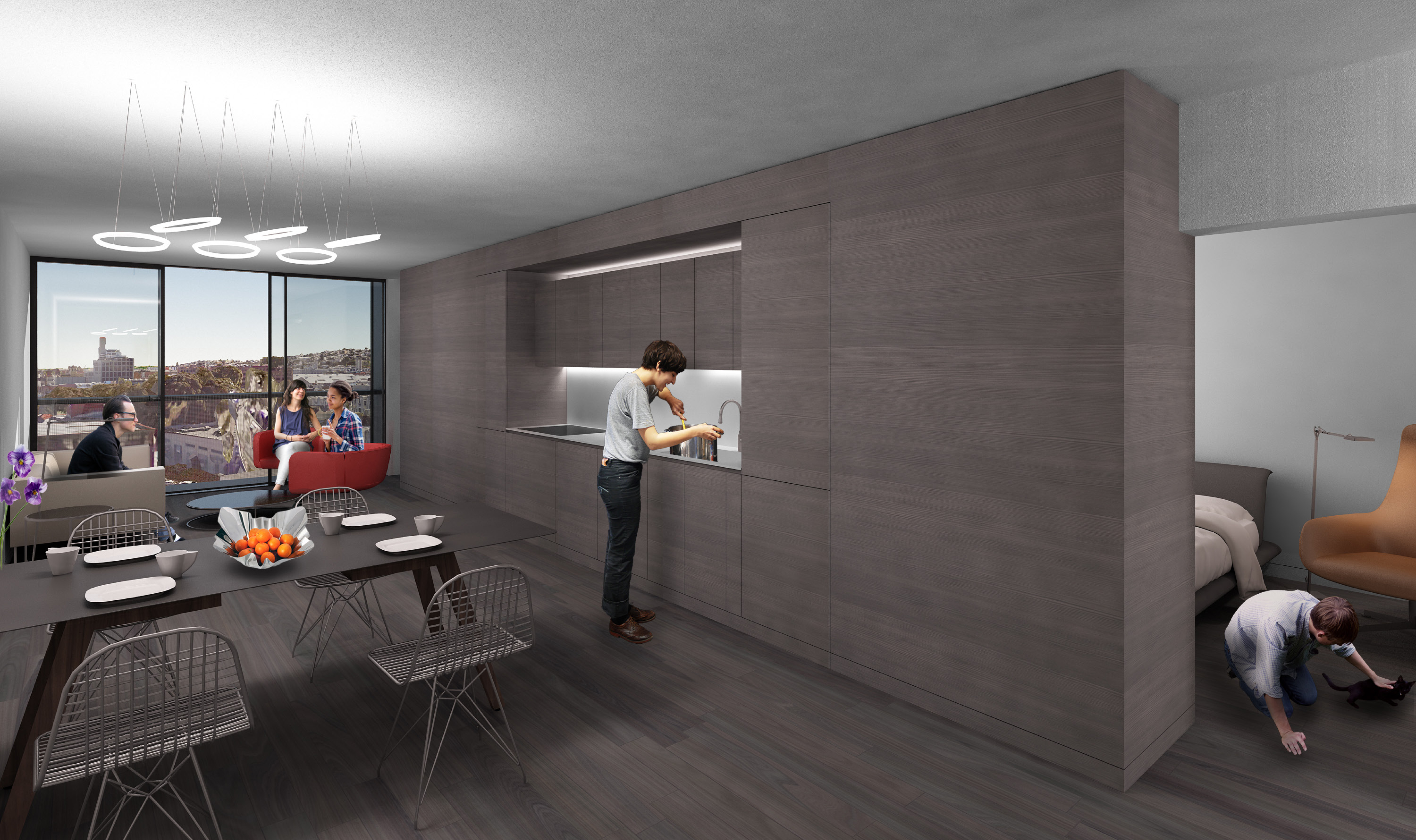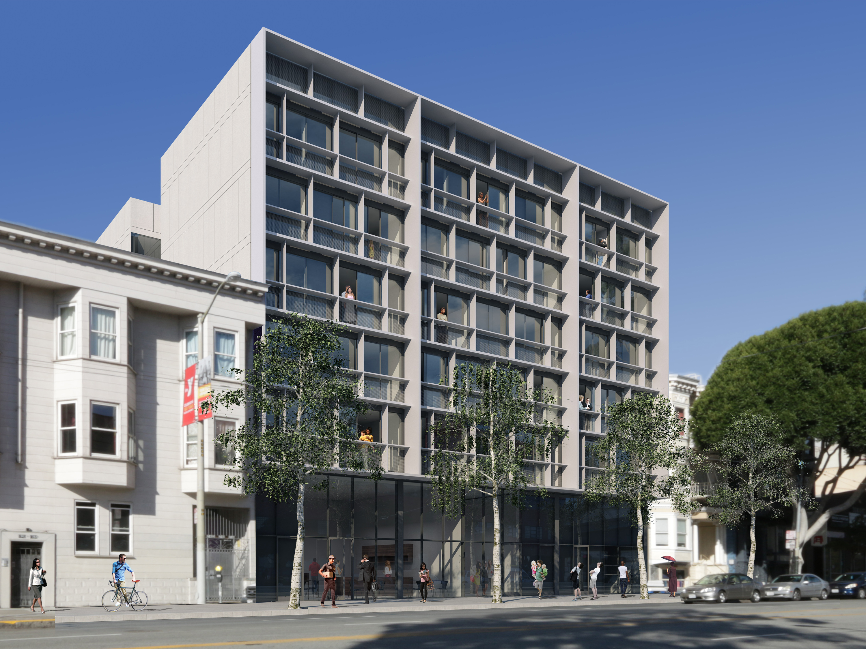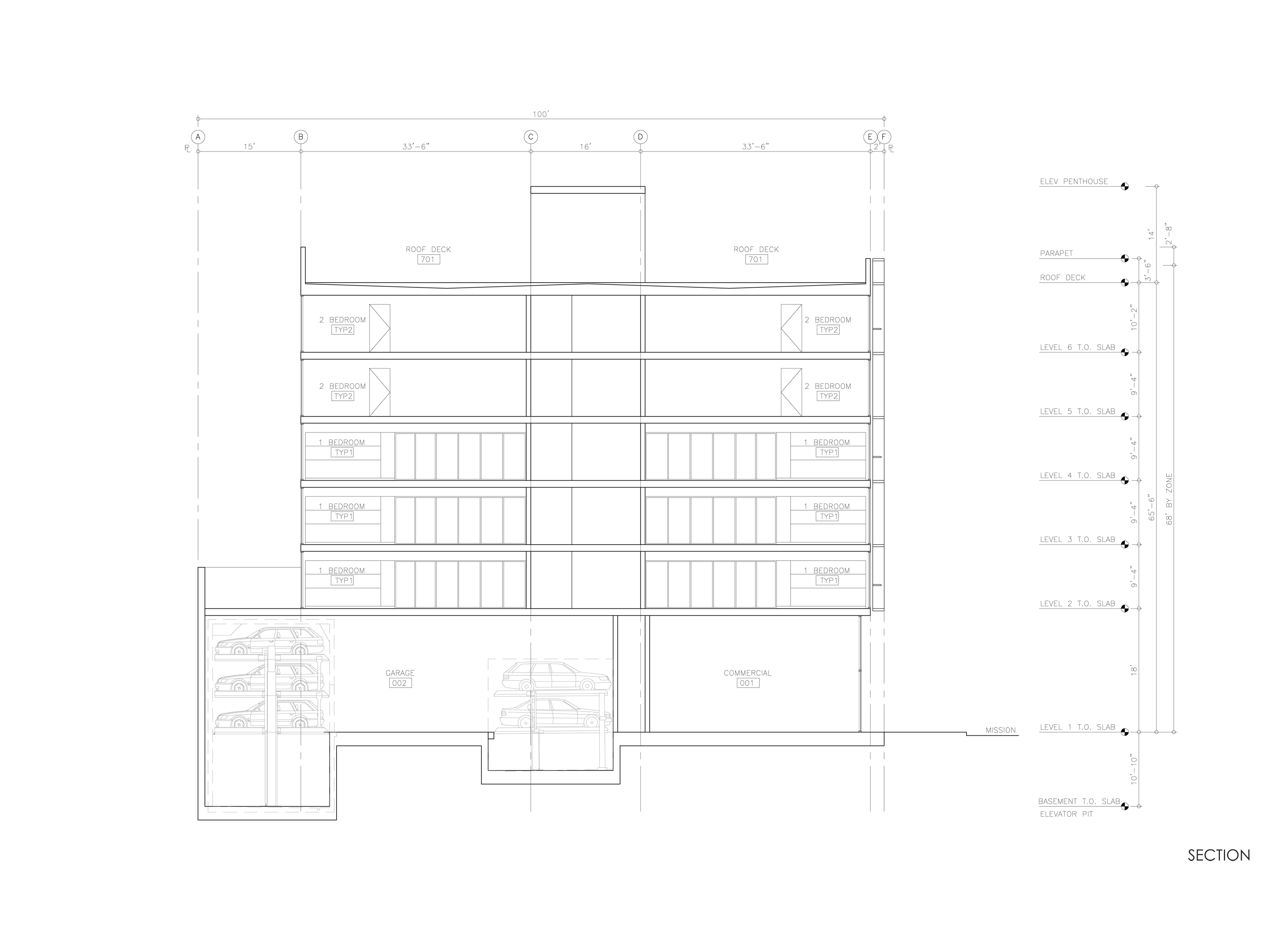 1726 Mission is a half a block from the last elevated section of the 101 Freeway, close to the Mission St off ramp. A grid of baffles deflects sound from the glazed façade. Sliding doors open to provide ‘French Balconies’ to the units.