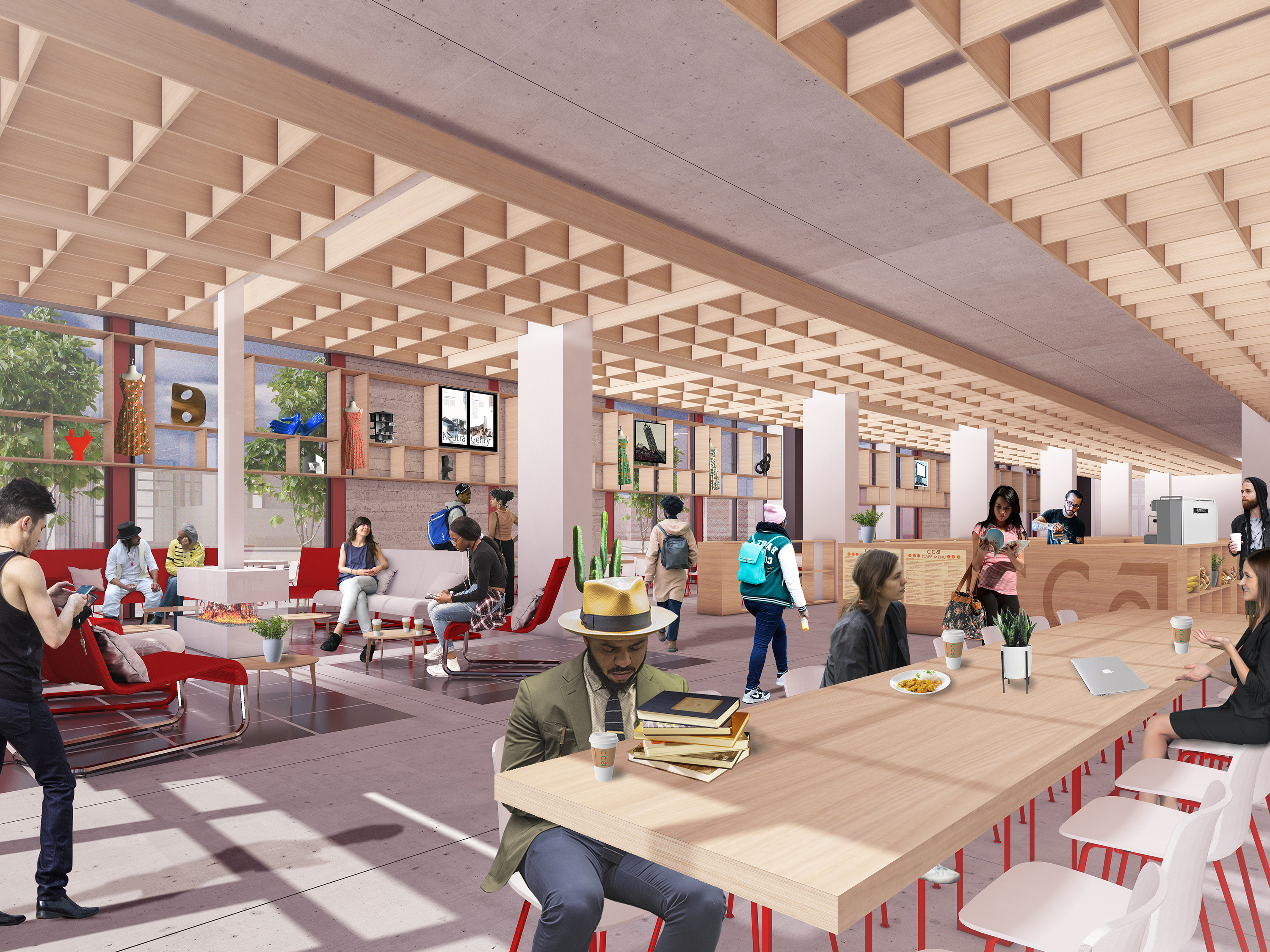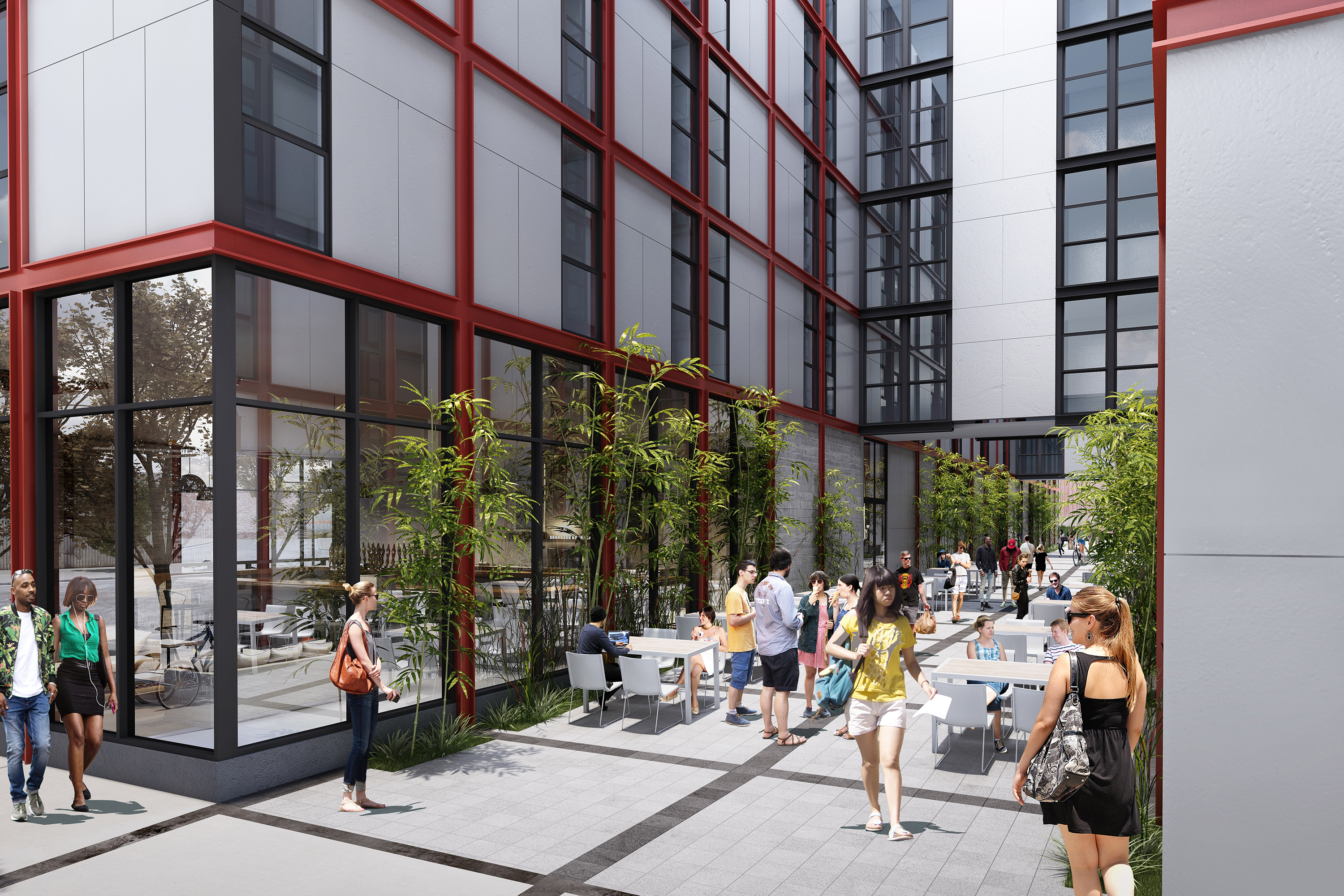 This level is dedicated to the Gallery Cafe, which spills out onto Eighth and Hooper and the courtyard. Hooper Street receives traffic calming to link to the main building.