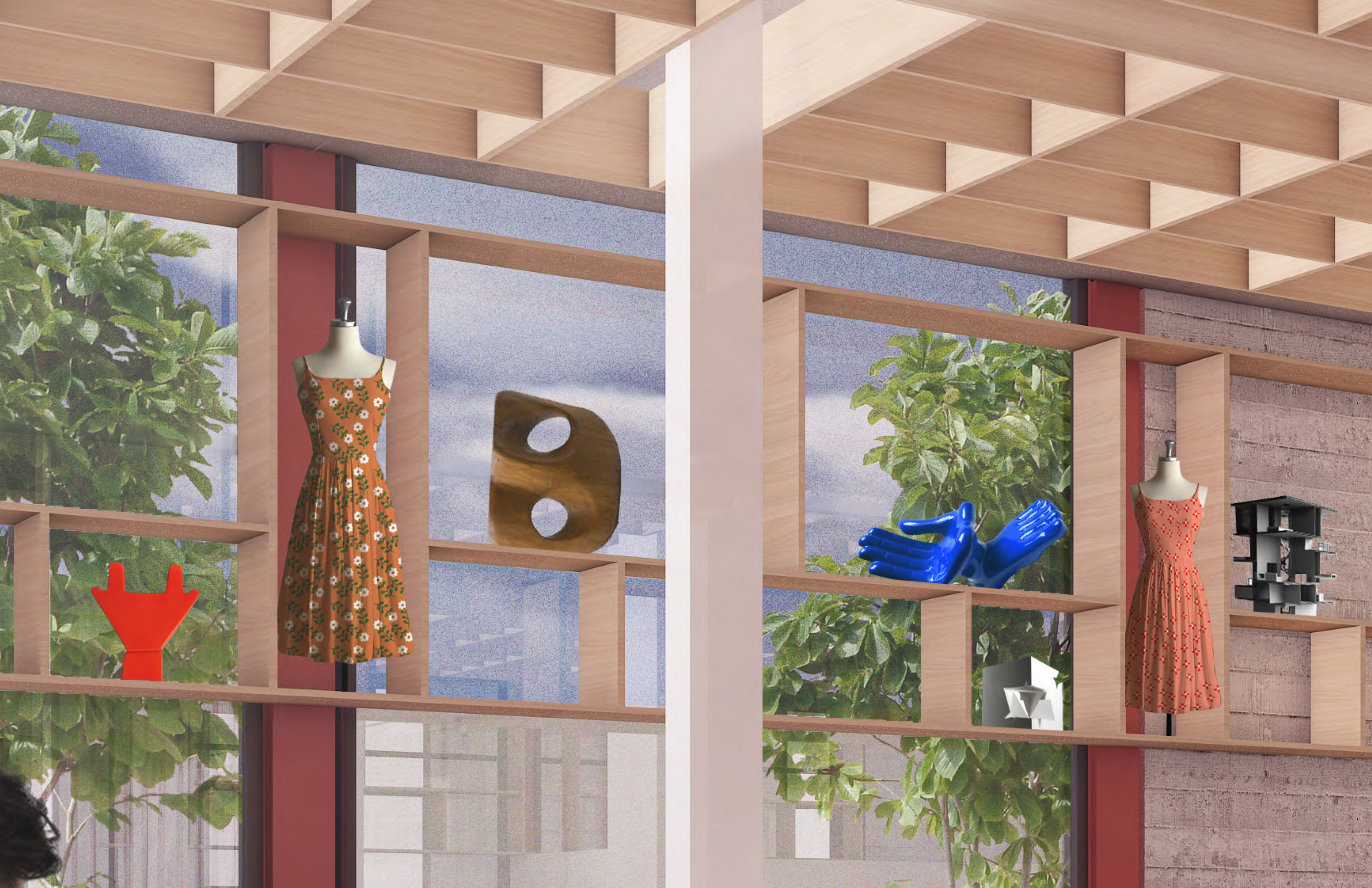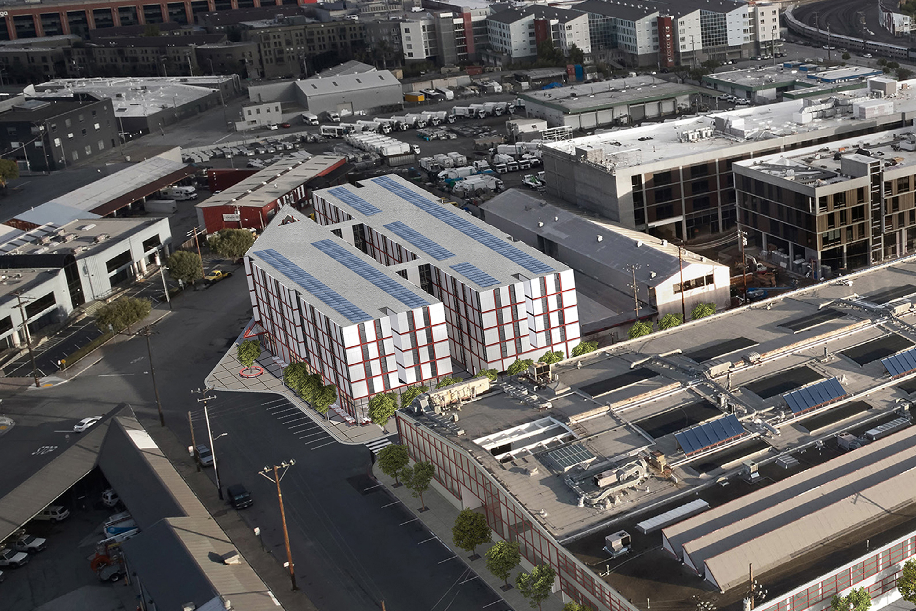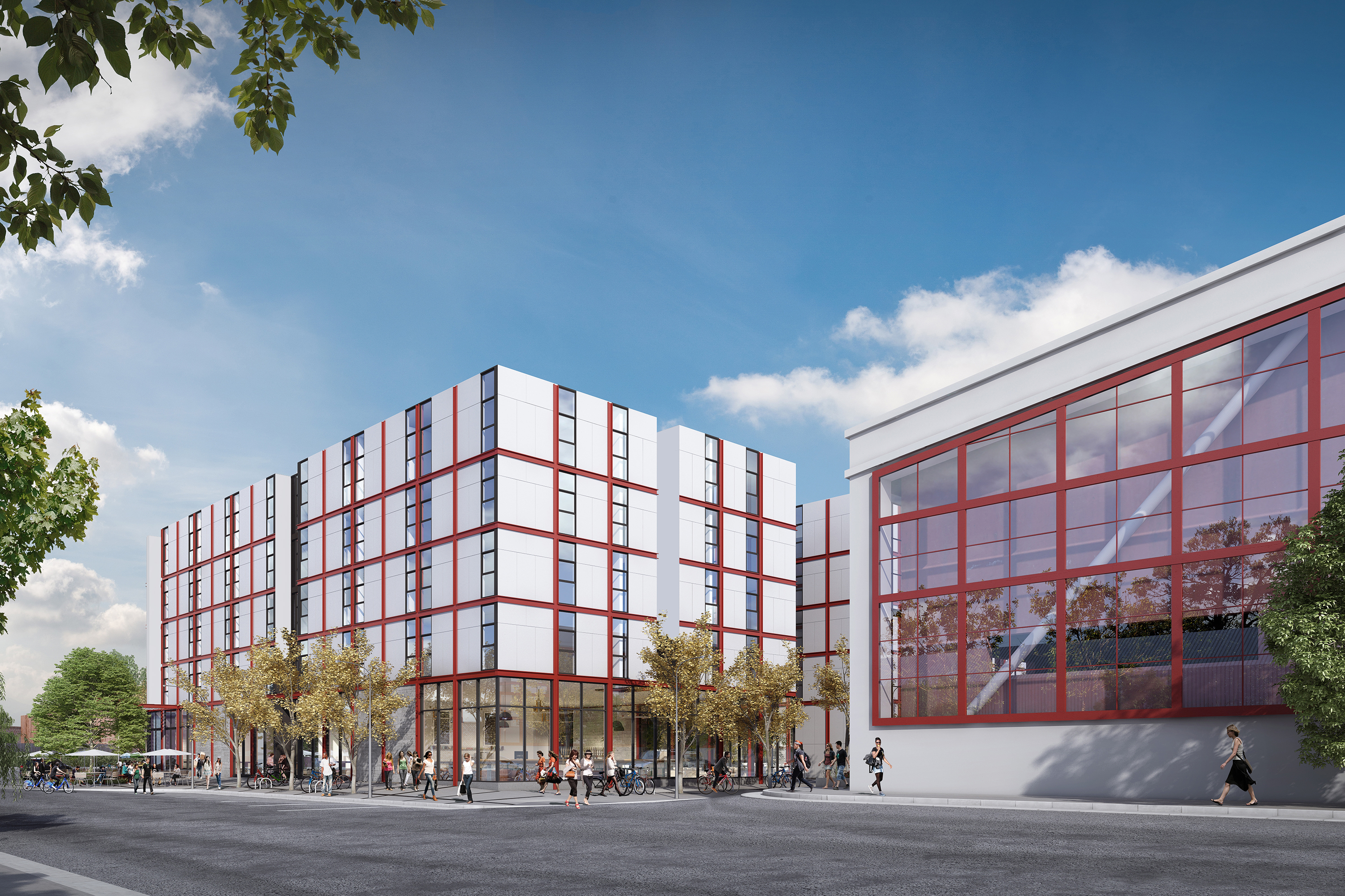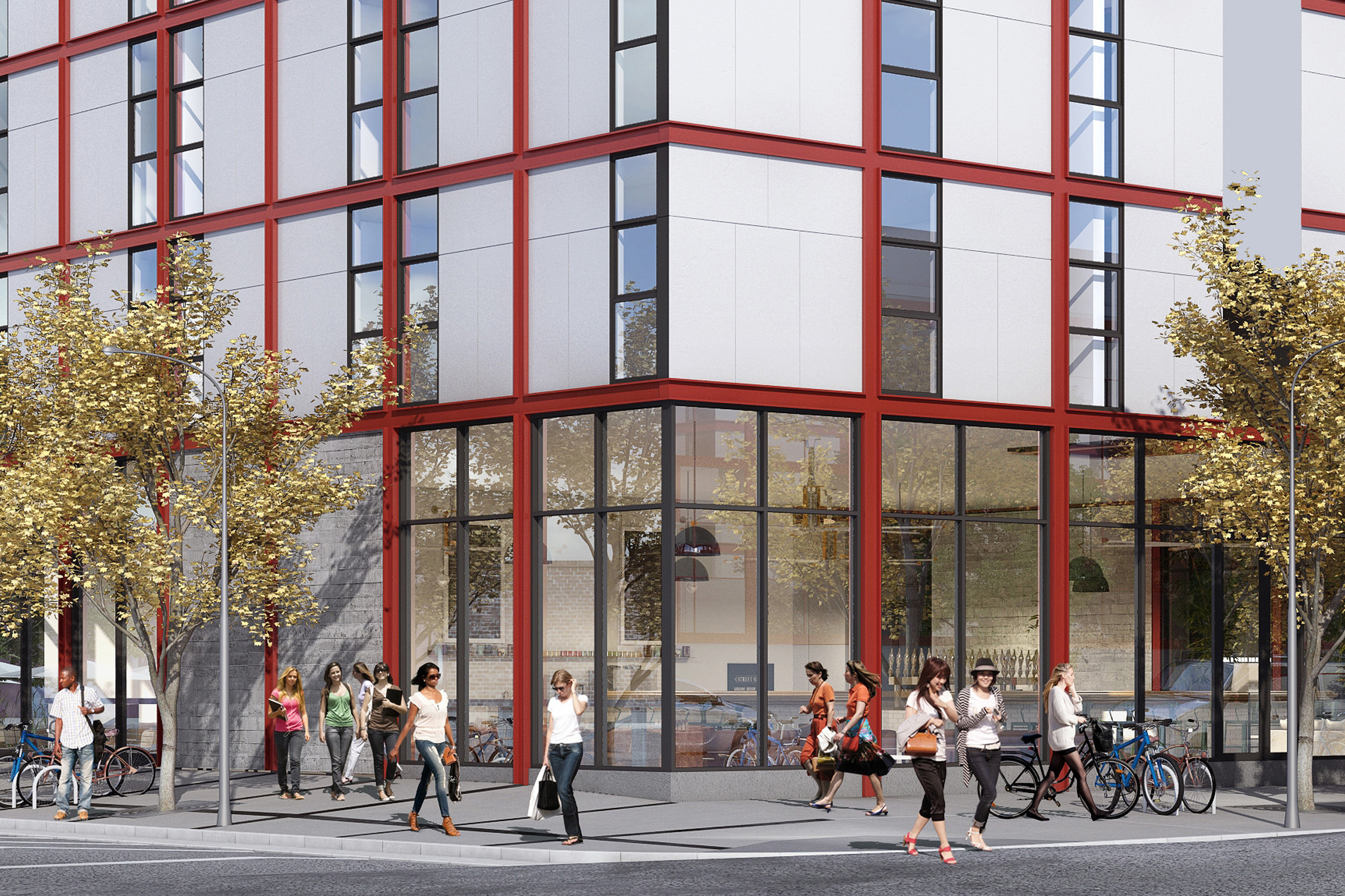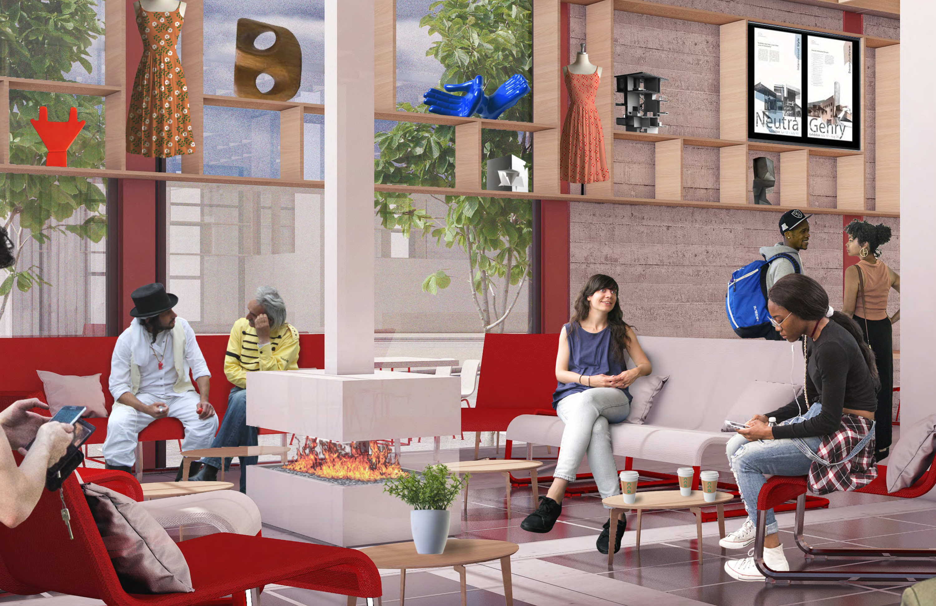 CCA’s Main Building, 1111 Eighth, is the starting point for 188 Hooper Freshmen Residences. The converted 1950’s SOM/Walter Netsch Greyhound Bus Building was designed under the influence of Mies and IIT. Our goal is to use this building, with its red grids and glass, as the basis of an identifiable language to build a campus identity for CCA.