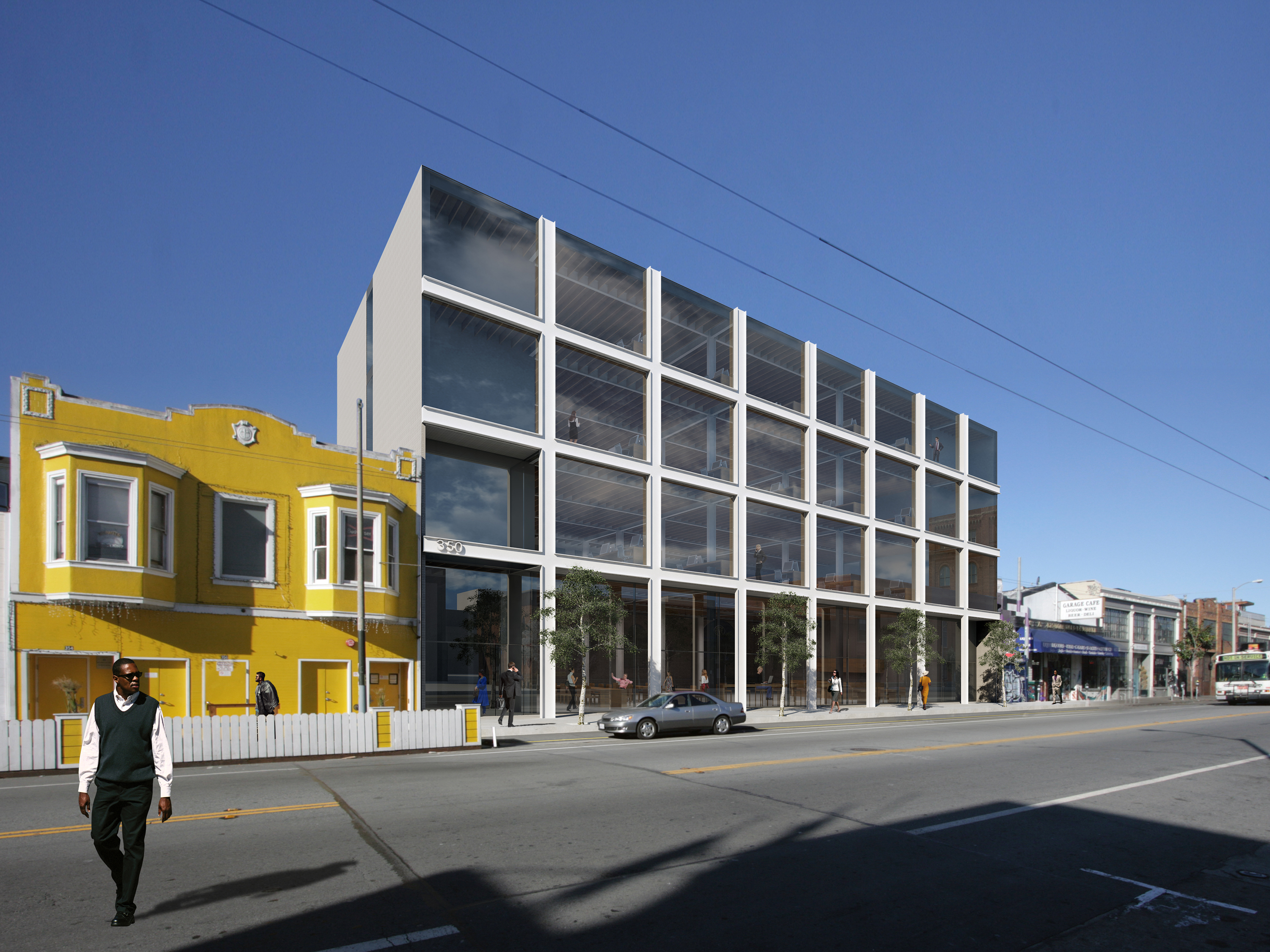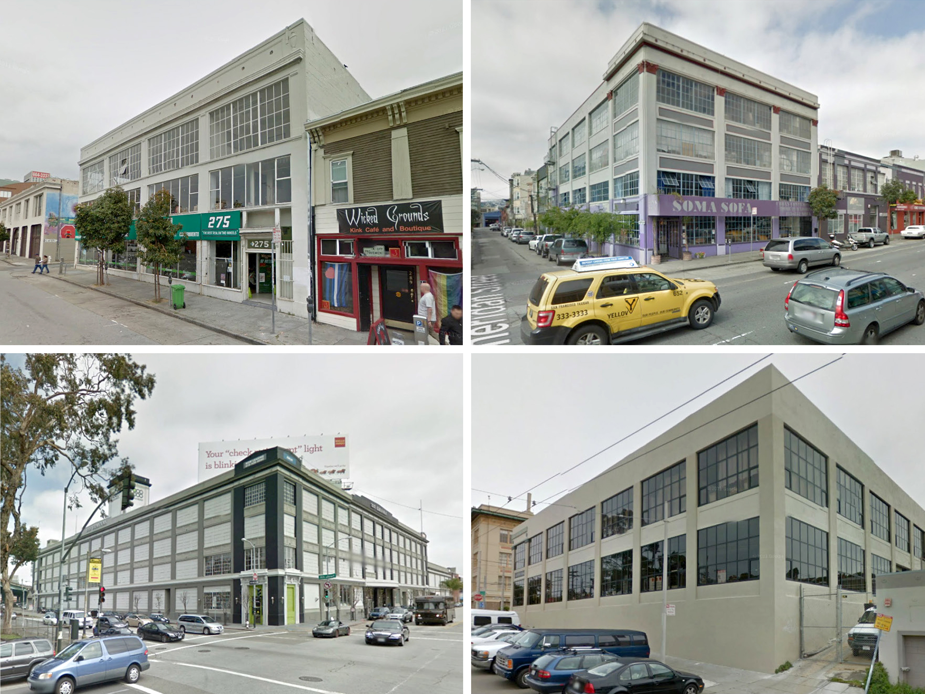 A prominent SOMA building type from the 20’s and 30’s is a generic multi-level warehouse with gridded windows in a gridded concrete frame façade, with heavy timber interior construction. Program free, these efficient spaces have housed many uses over the years: manufacturing, repair, live work and residence. Currently they are in high demand for tech startups as office/lofts, and being sandblasted inside and painted charcoal outside for their new lives.