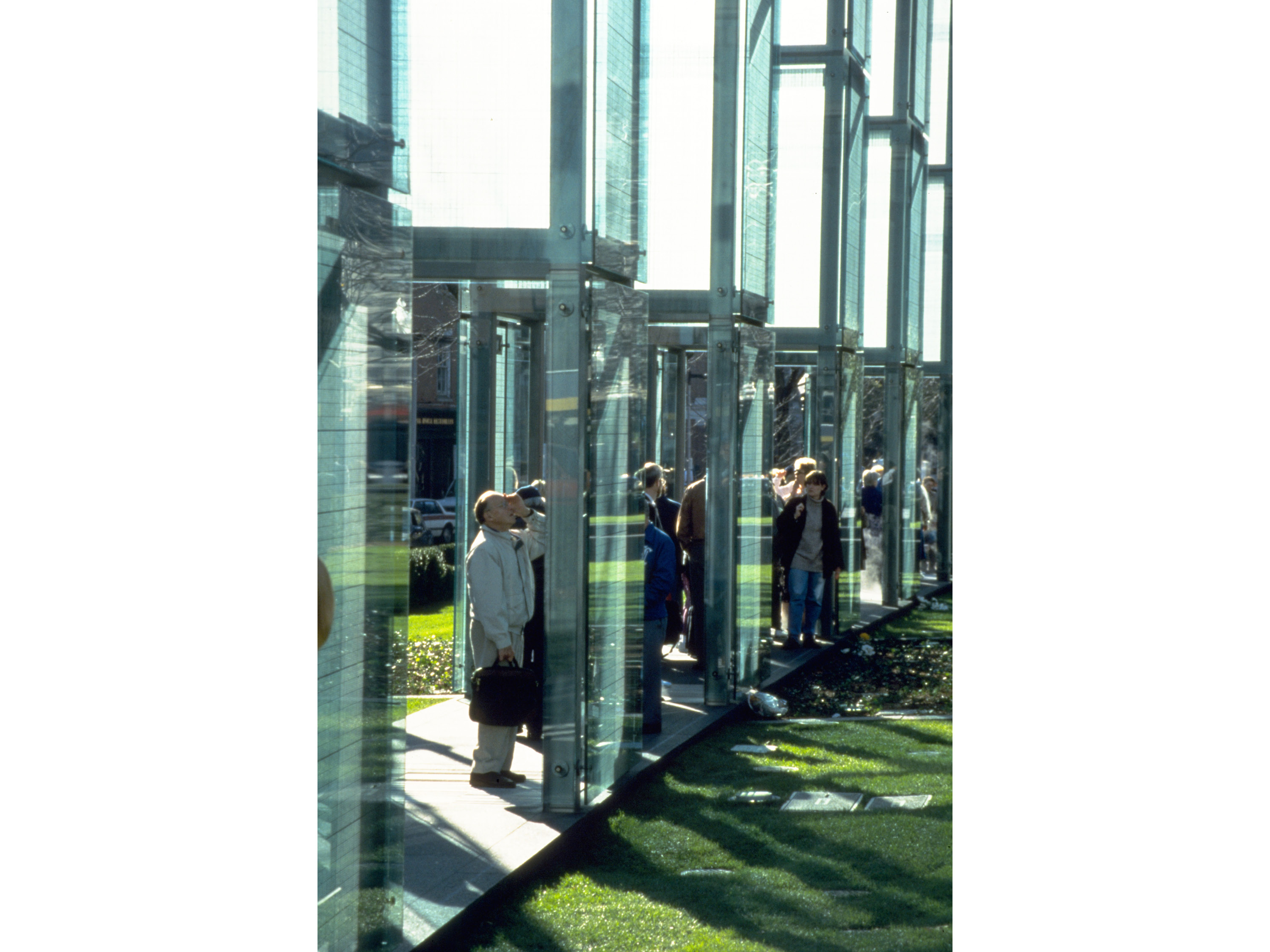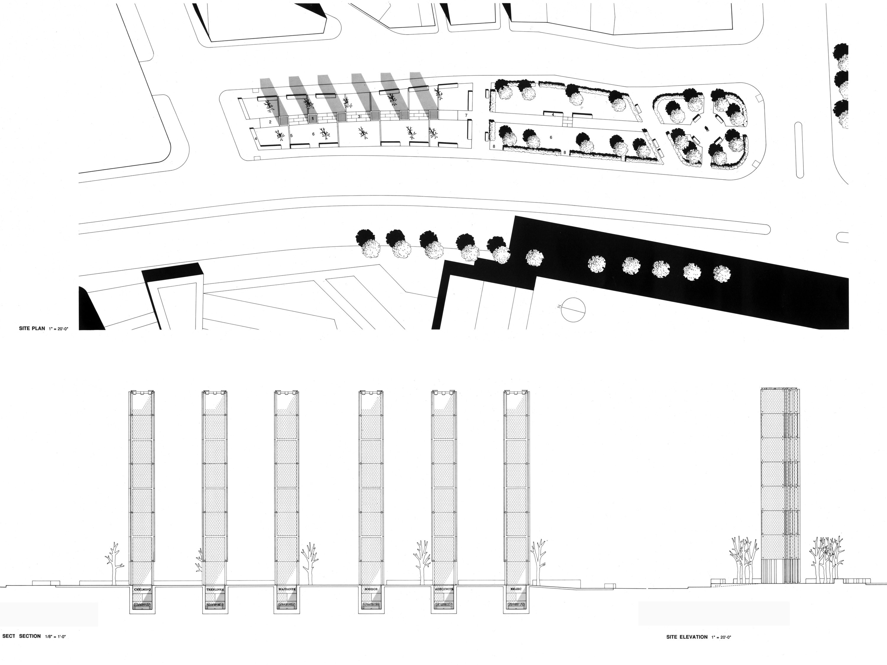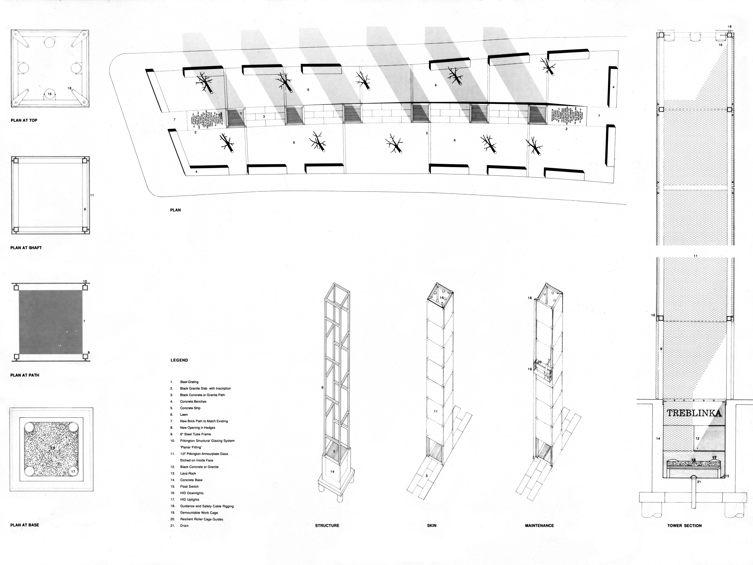 As visitors walk along this path, entering the towers, they are tattooed with the shadows of numbers, and trapped momentarily in a theater of horror. At the scale of the city, the memorial has another role: path, colonnade, and frame create urban space, defining edges and relationships with the buildings and city beyond. These six towers are emblems of faith, a covenant of trust that memorializes a collective evil. They are towers of hope and aspiration.