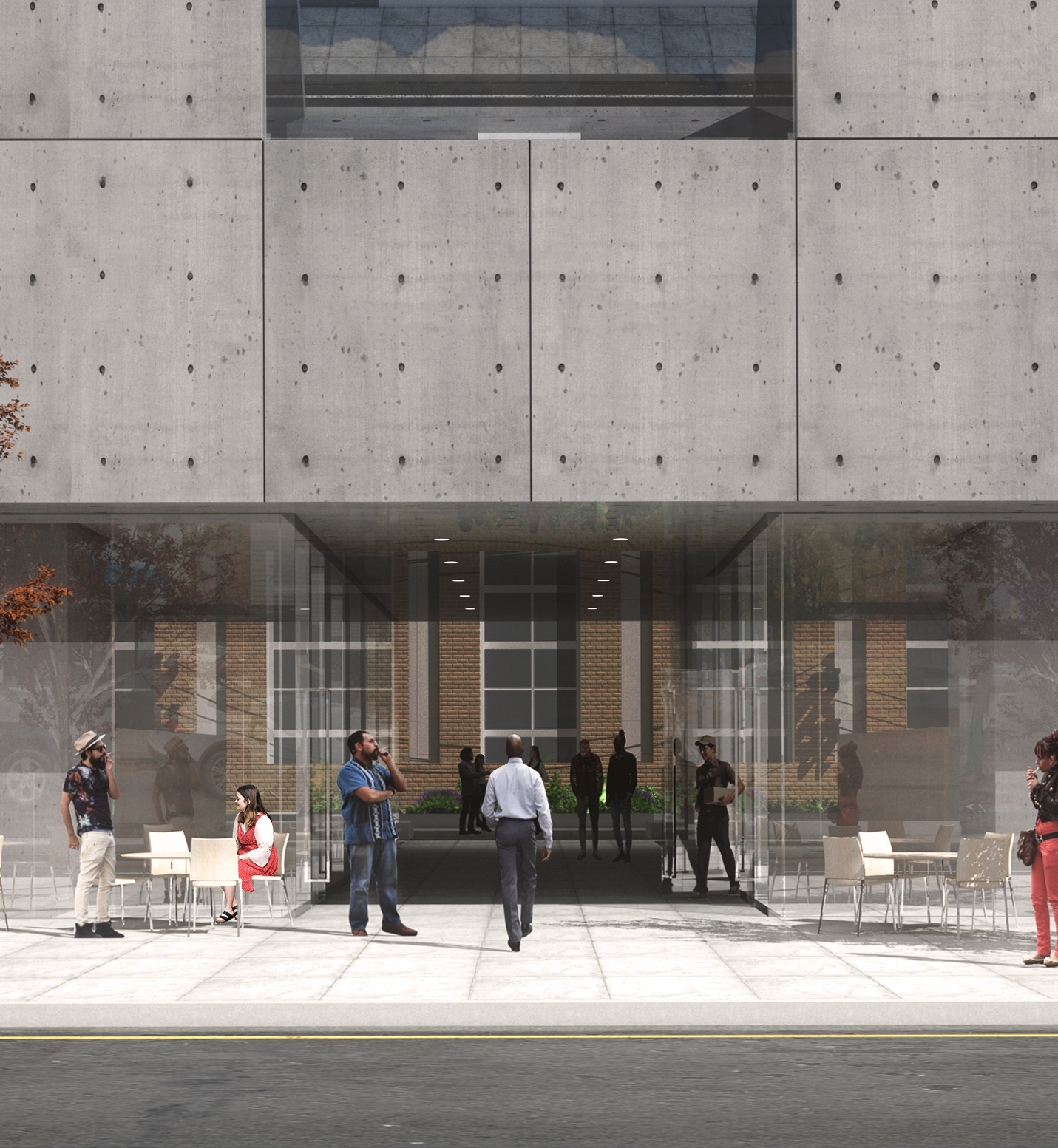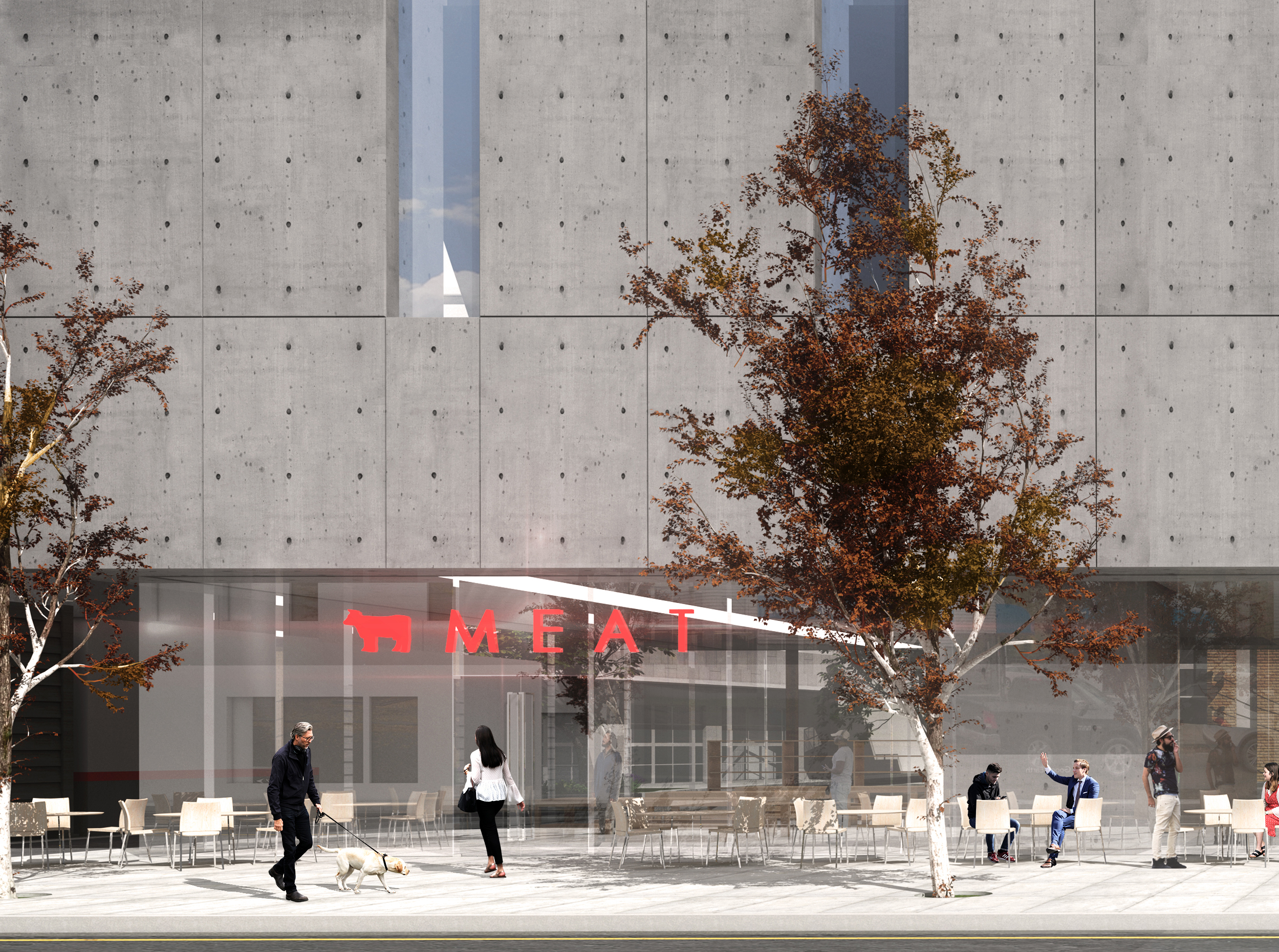 The glass storefront ground floor houses a central community space flanked by two restaurants, one Milk, one Meat, which also serve as kitchens for synagogue events and dinners. This street level is transparent and open, and a participant in neighborhood life.
