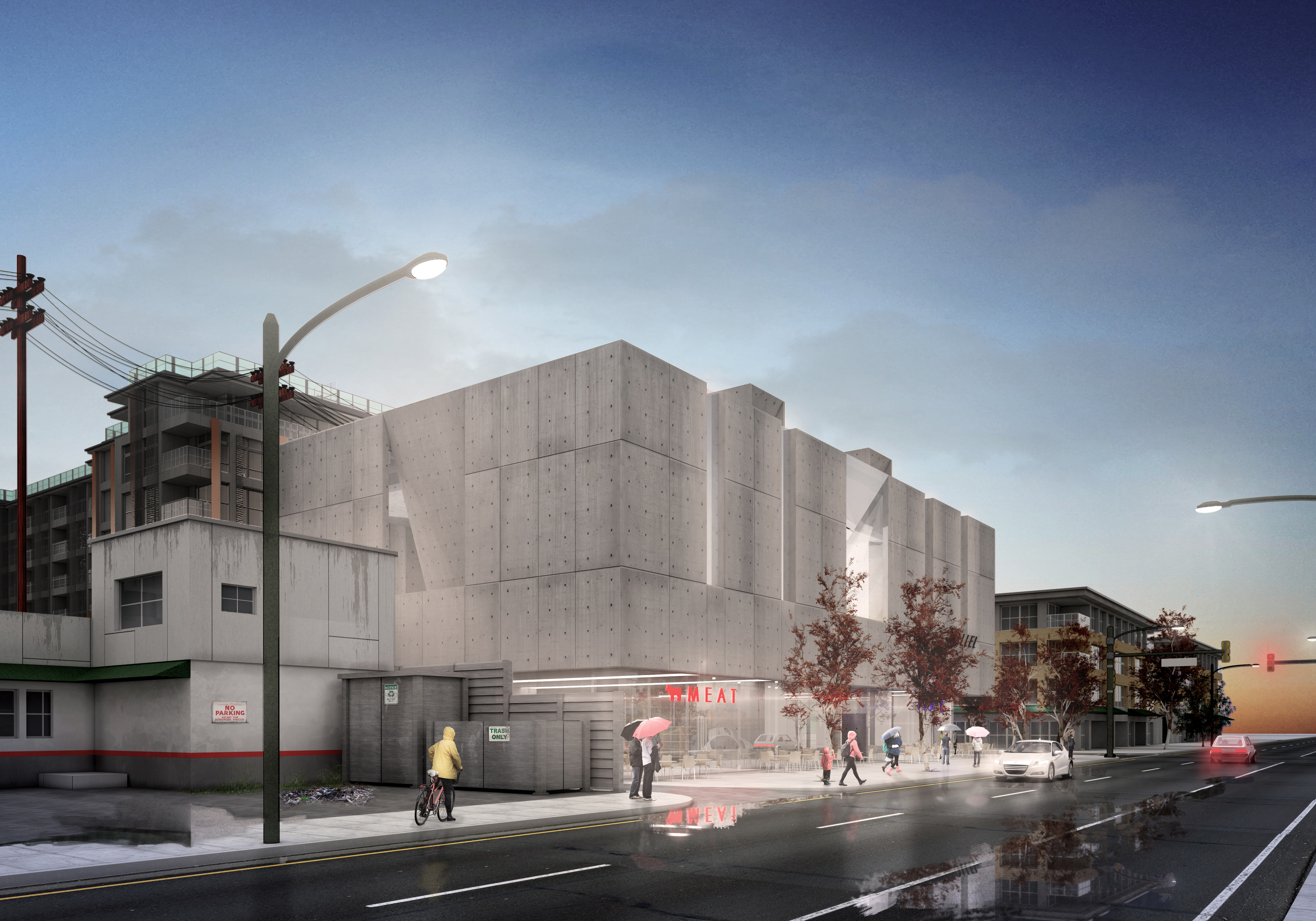 Their new home is located on a busy main street, Arbutus, at the corner of Tenth. The building is connected to the corner, and becomes a passage from Arbutus to the pedestrian and bicycling track that parallels it at the rear.