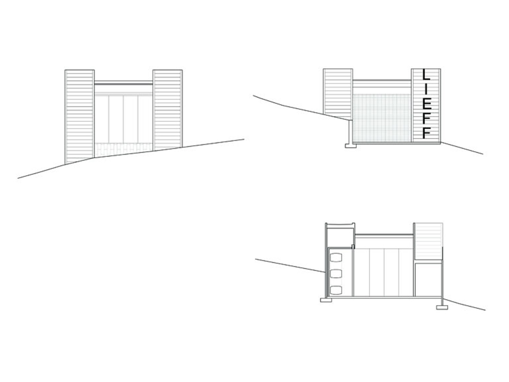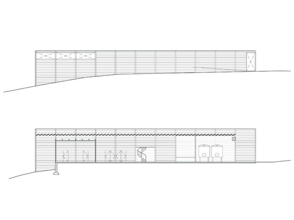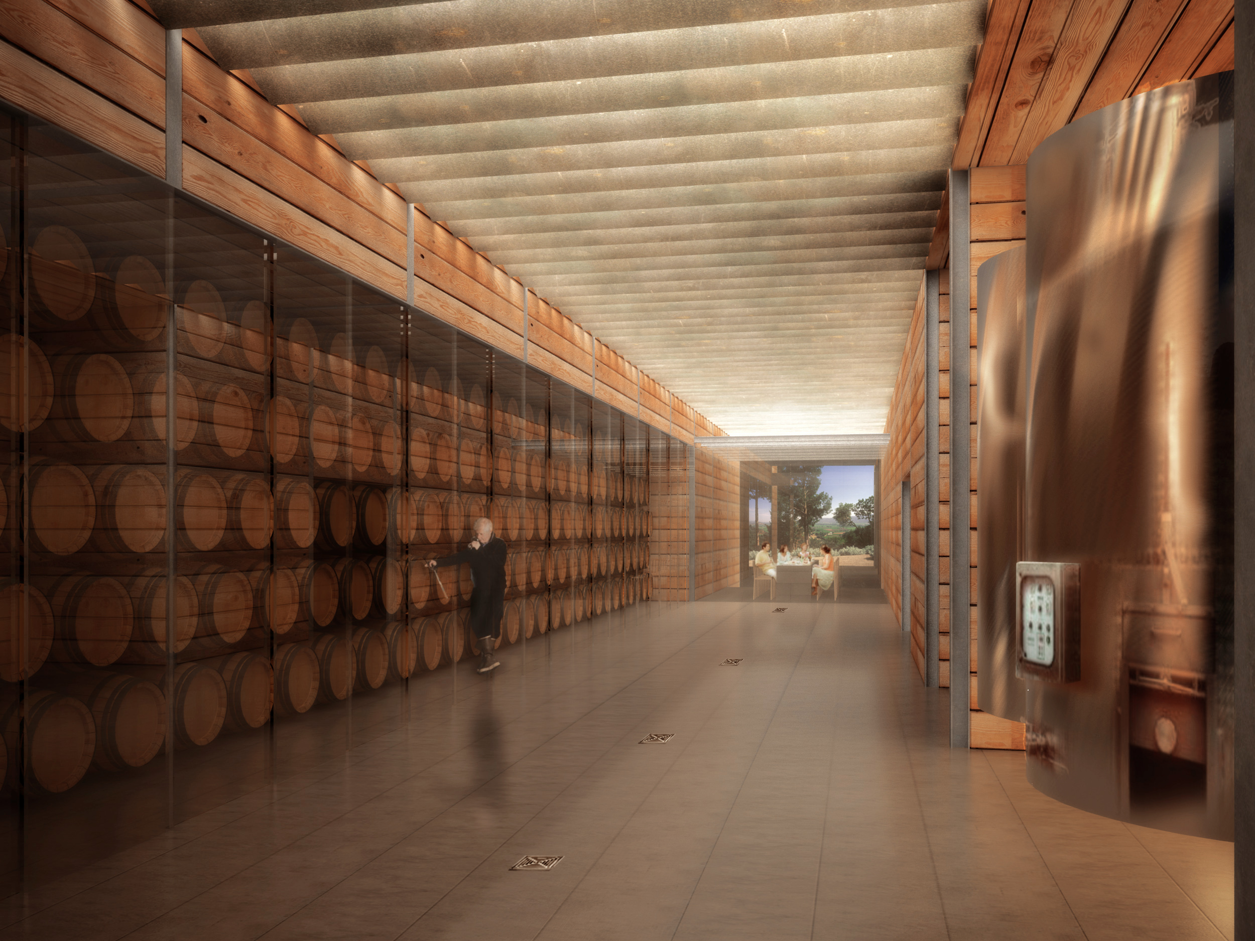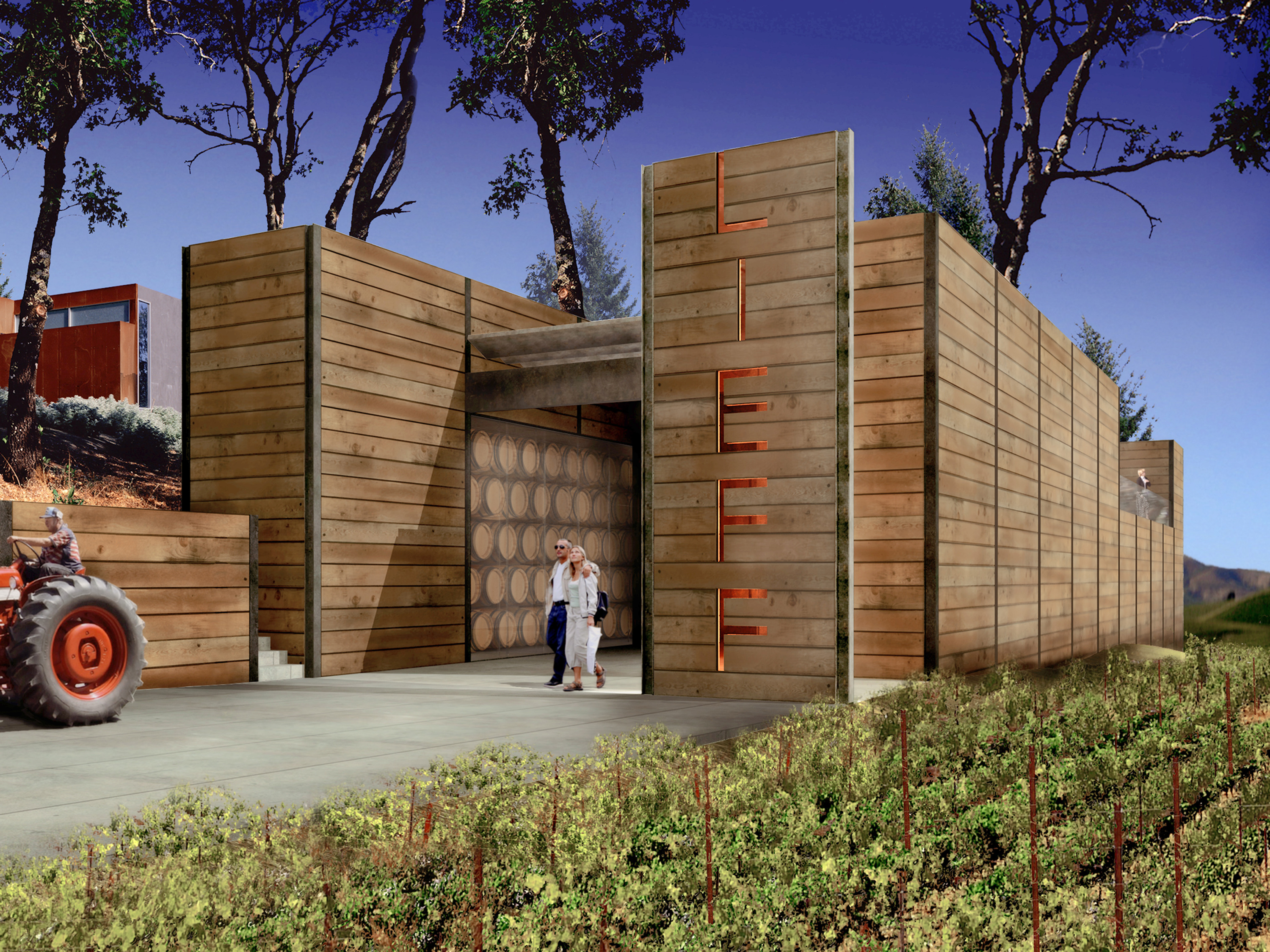 Lieff is a boutique winery in the Napa Valley. Its structure is derived from the wood construction of the wine barrel, supported by metal posts that hold it together. The center is a non-conditioned open court for delivery, crushing and other activities, with barrel and tank storage in the two thickened walls flanking the court. The open design of the building facilitates the flow from vineyard to bottle.