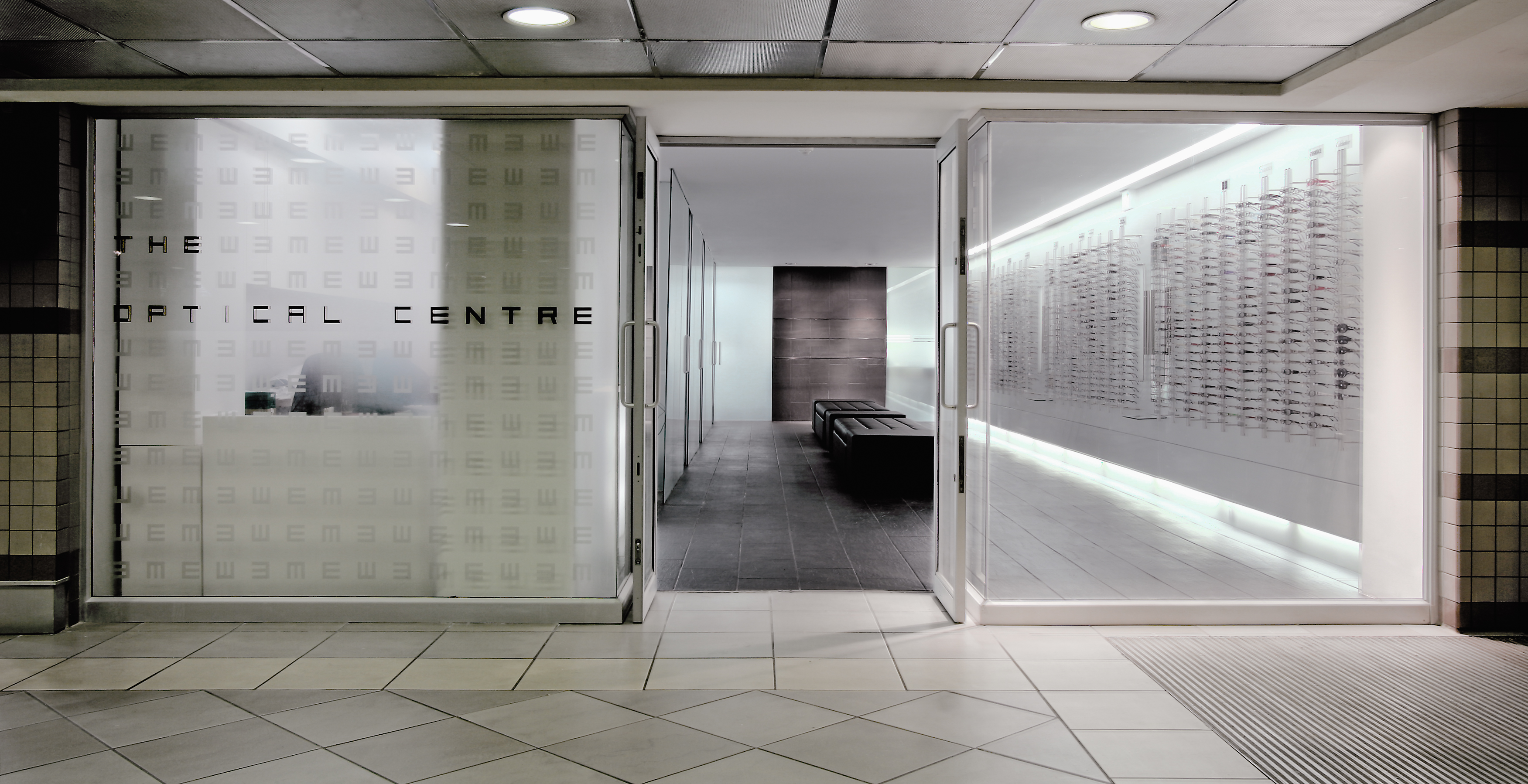 The Optical Center is a multiple outlet store, with different locations and configurations, so a palette of components are established to be deployed site specifically to create the Optical Center brand.