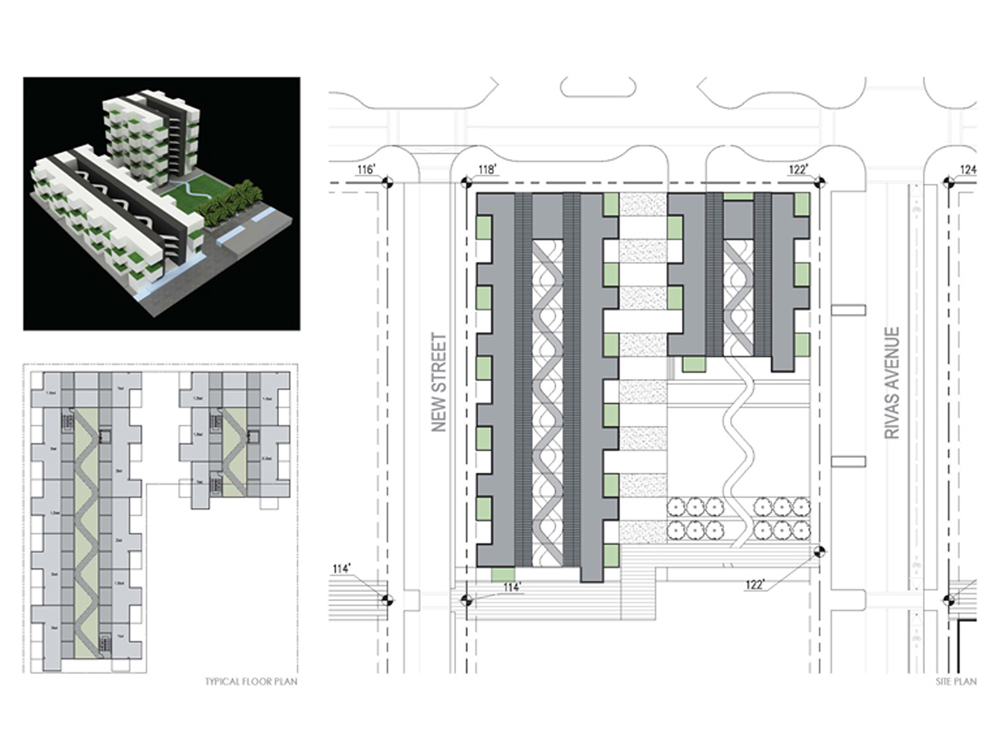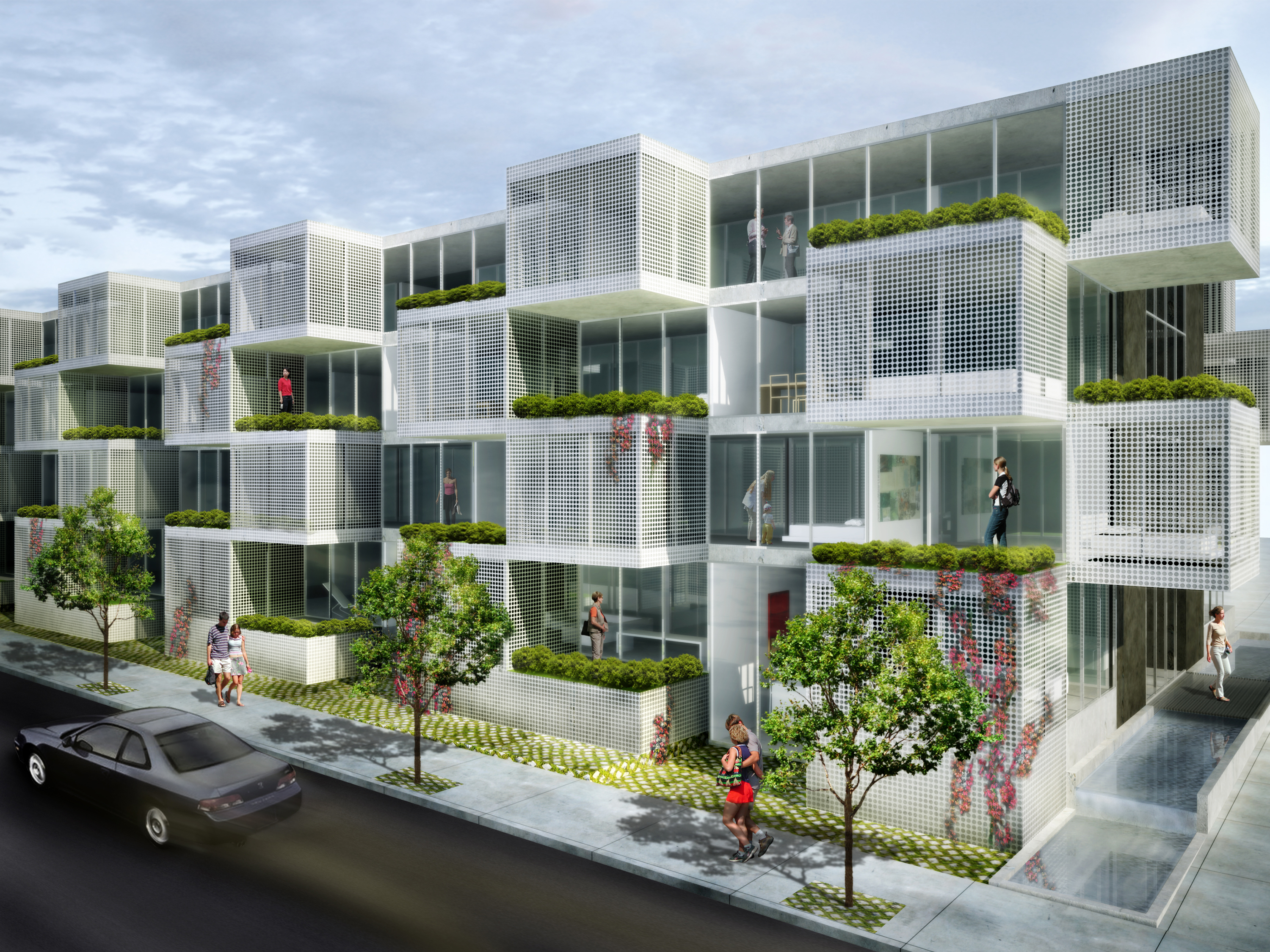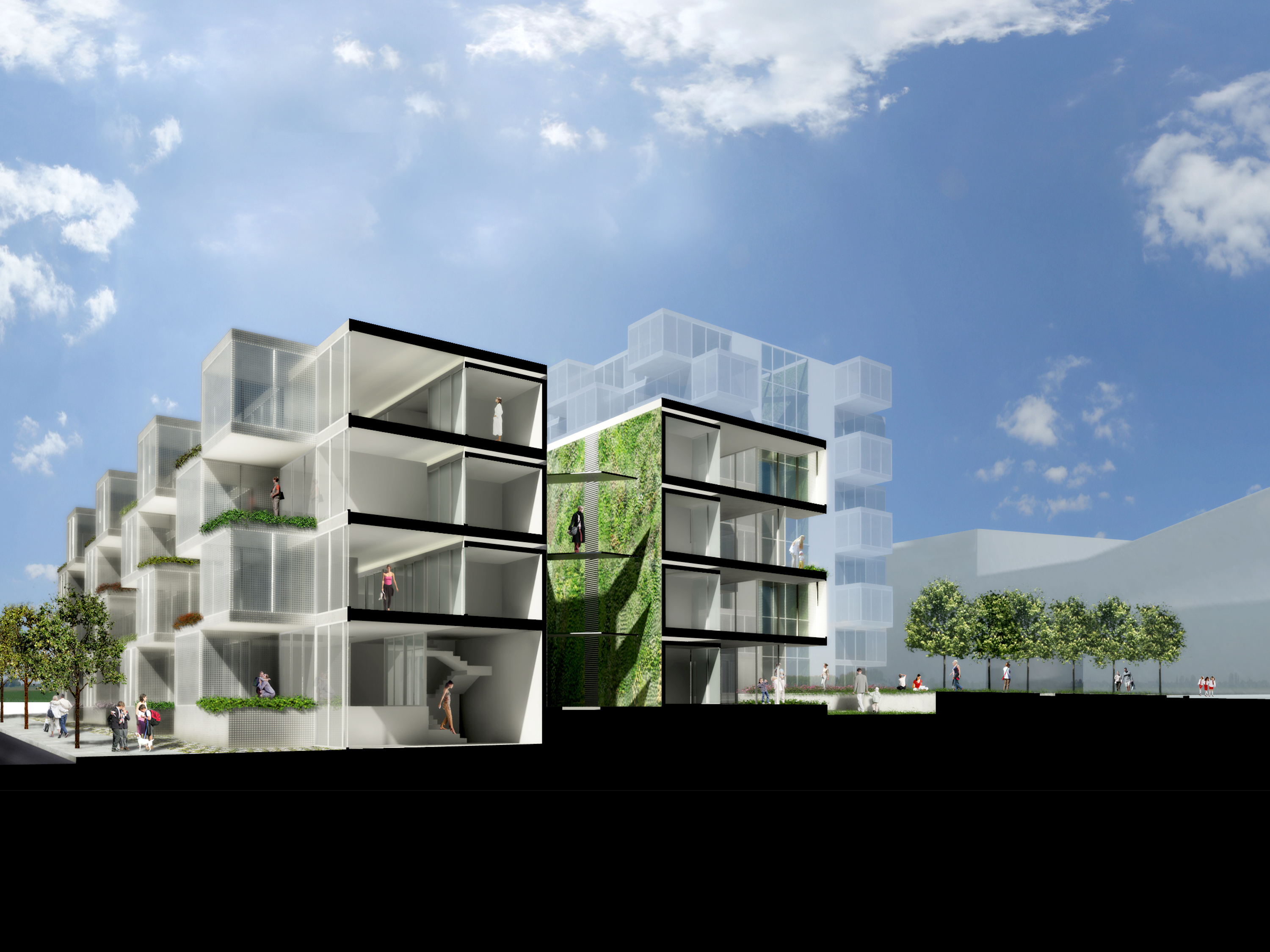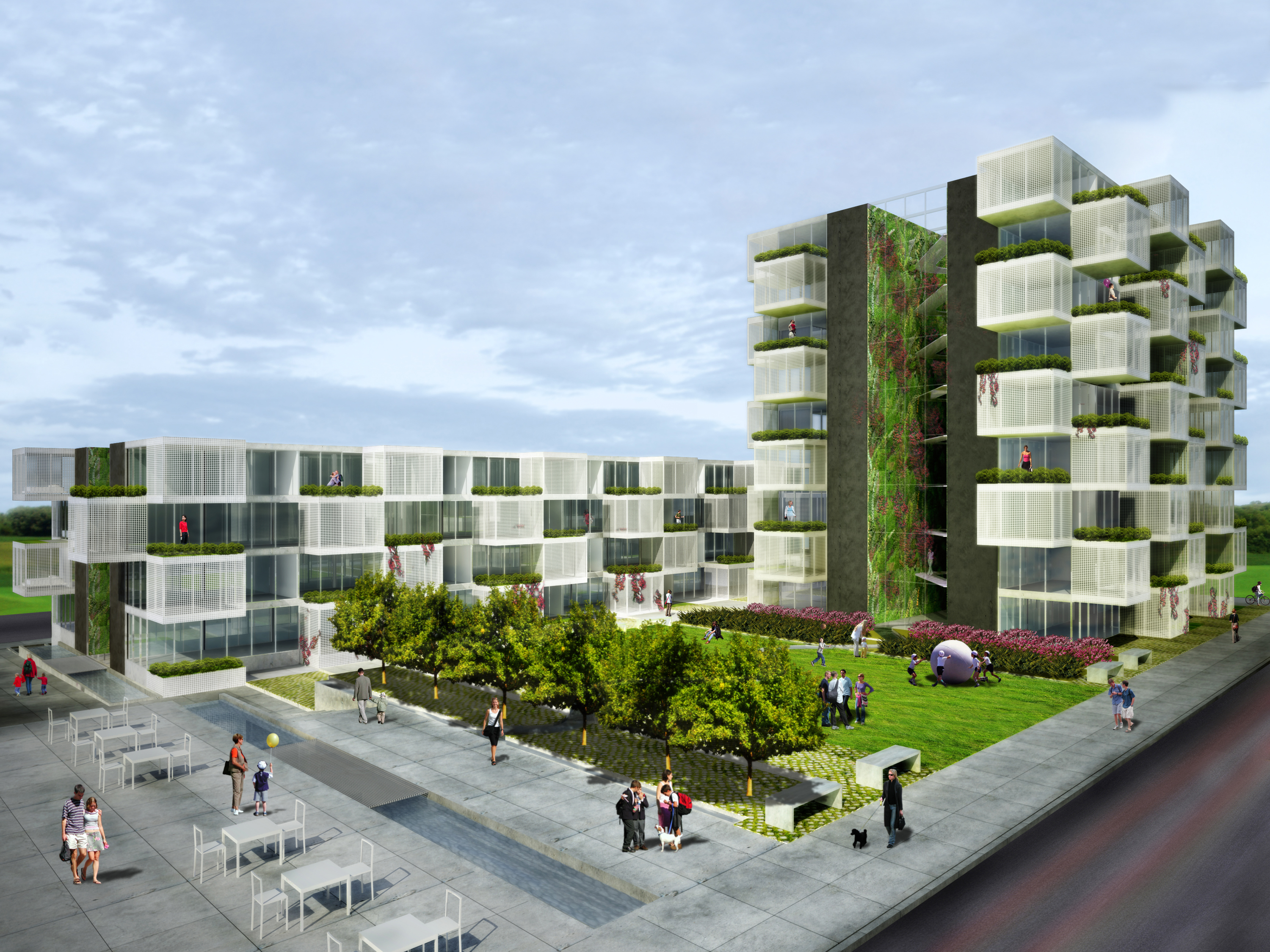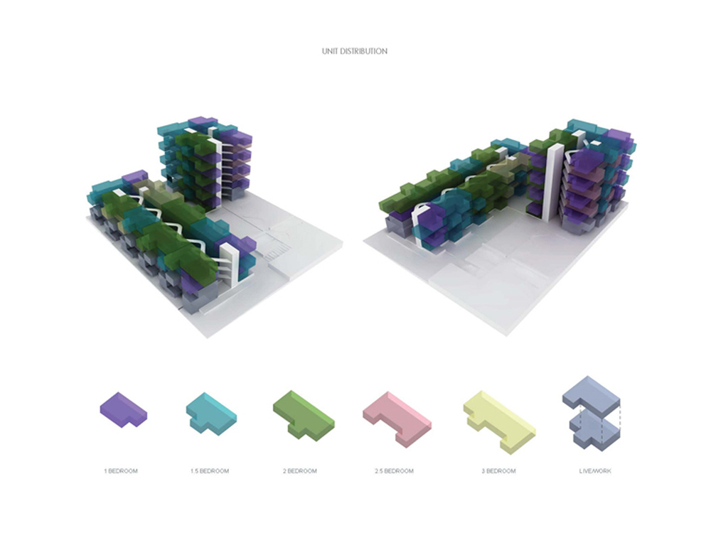 This is a test project to explore the possibilities for this new city within the city. Our design takes into account the unique opportunity of an urban home in this new center, and offers another approach to living, where as well as the density of the city, each home also has generous private outdoor space – a garden.