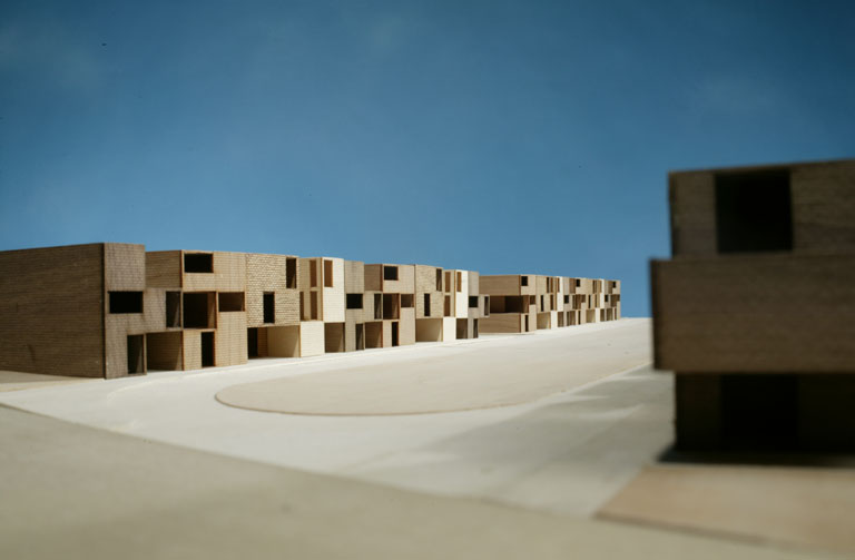 The site, which will comprise thirty-eight town houses around a grassy oval, is the centerpiece of a new urban development that stretches west from the Sacramento River. Ever since the adoption of the zoning ordinances that determined the skyline of Manhattan, urban form has been a process of additive geometry, one that accumulates blocks of building into shapes. Here, the volume of the site is filled, then carved with voids of light and air.