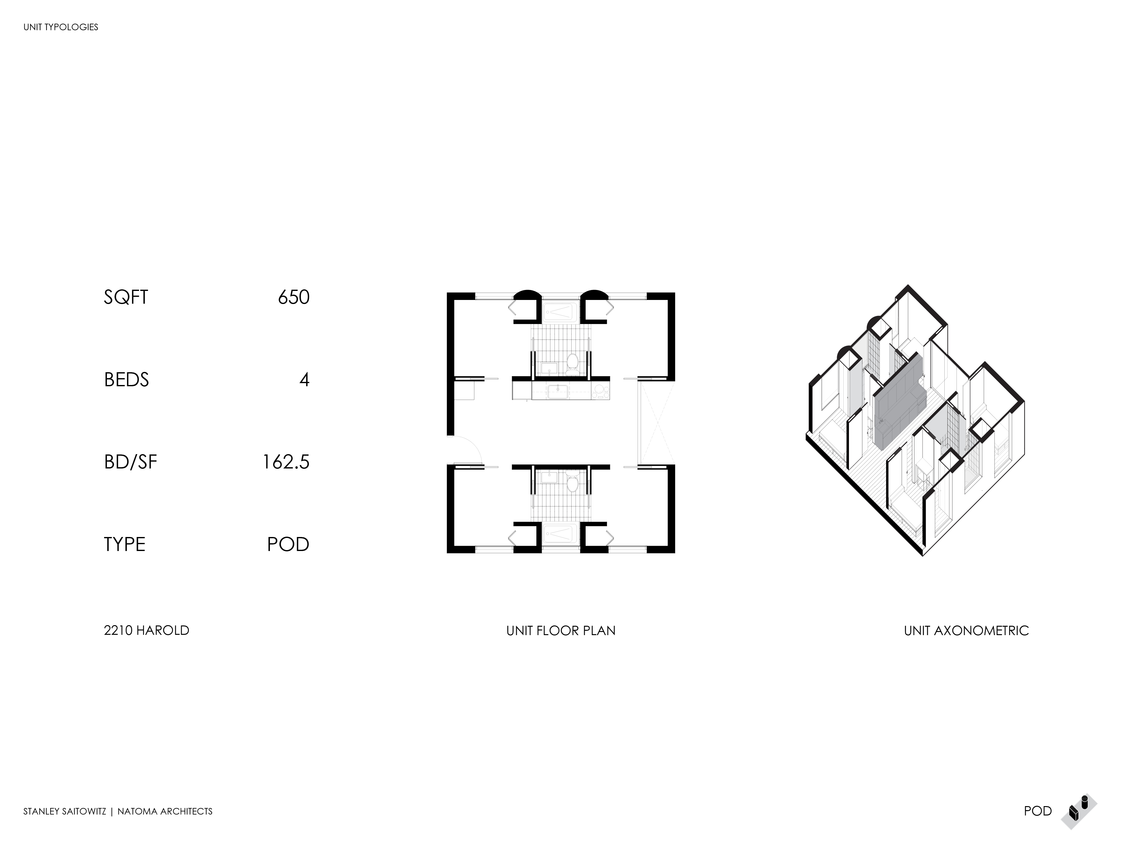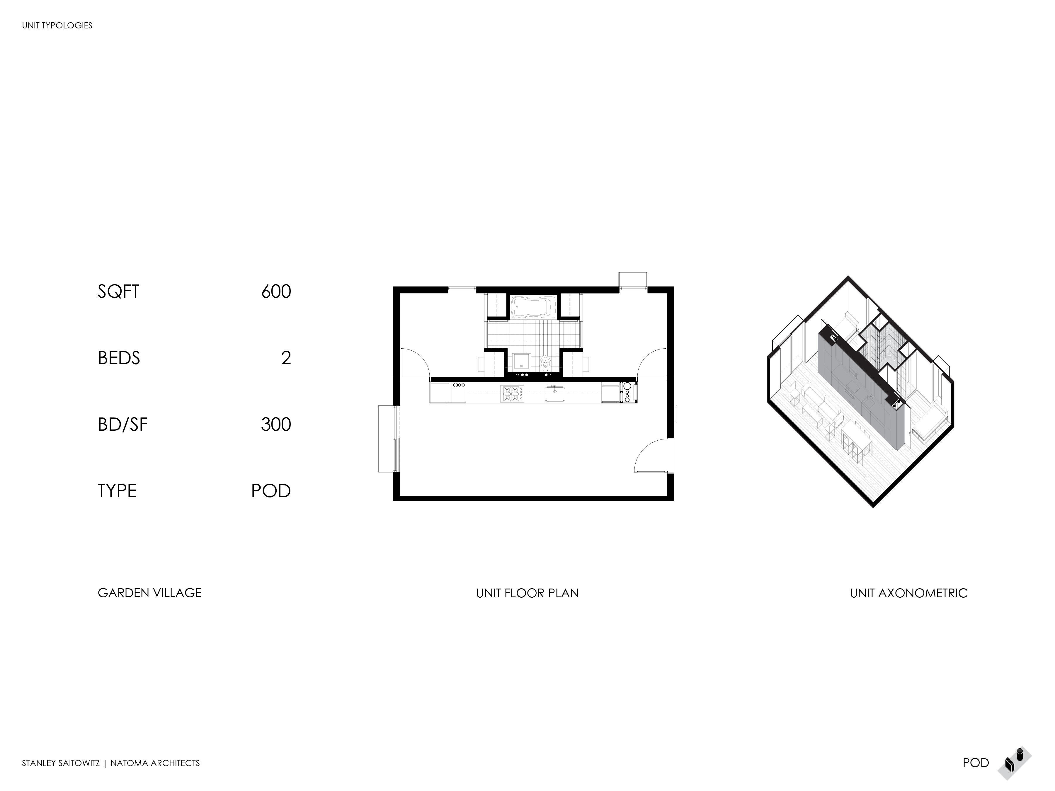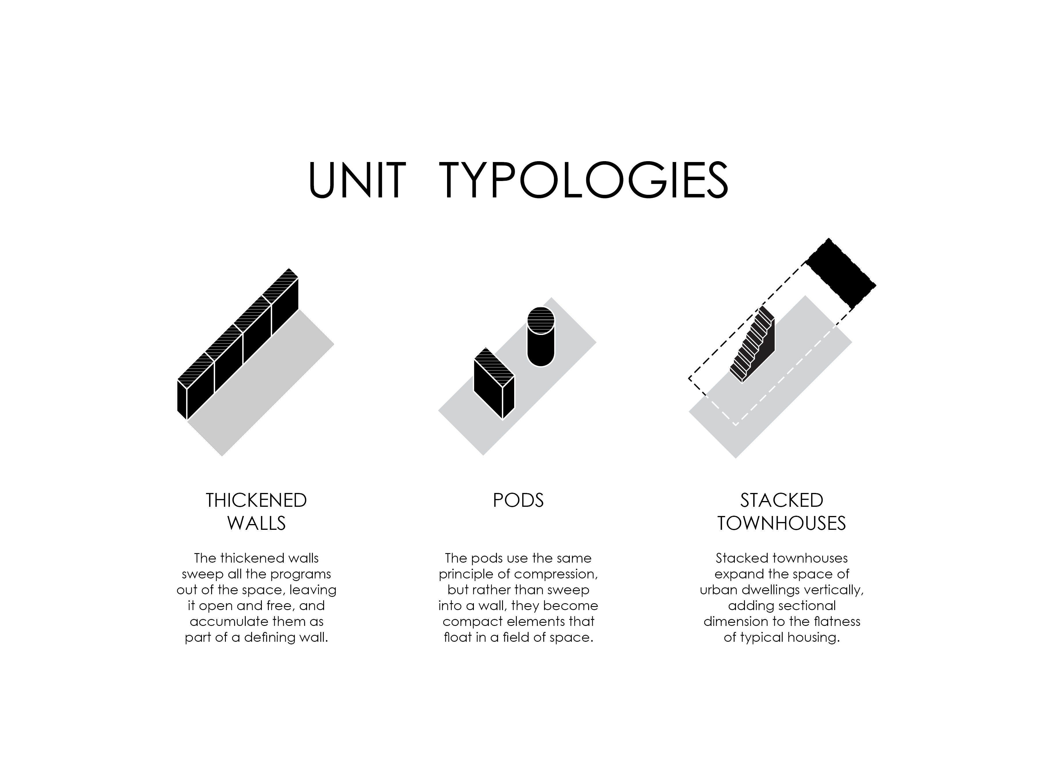 Using this strategy, we have developed three typical plan types; thickened walls, pods and stacked townhouses.
